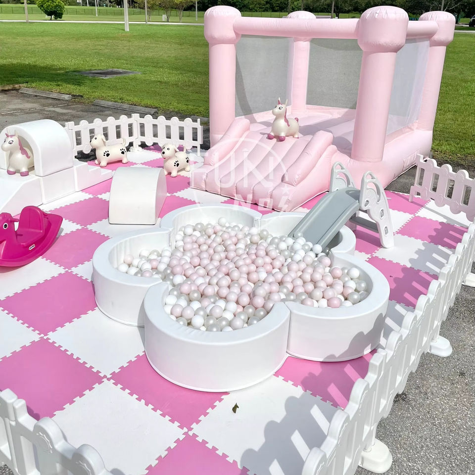 Château Rose Module de Jeux Souples Combiné Portable Aire de Jeux Extérieure Équipement de Fête d'Anniversaire pour Bébé