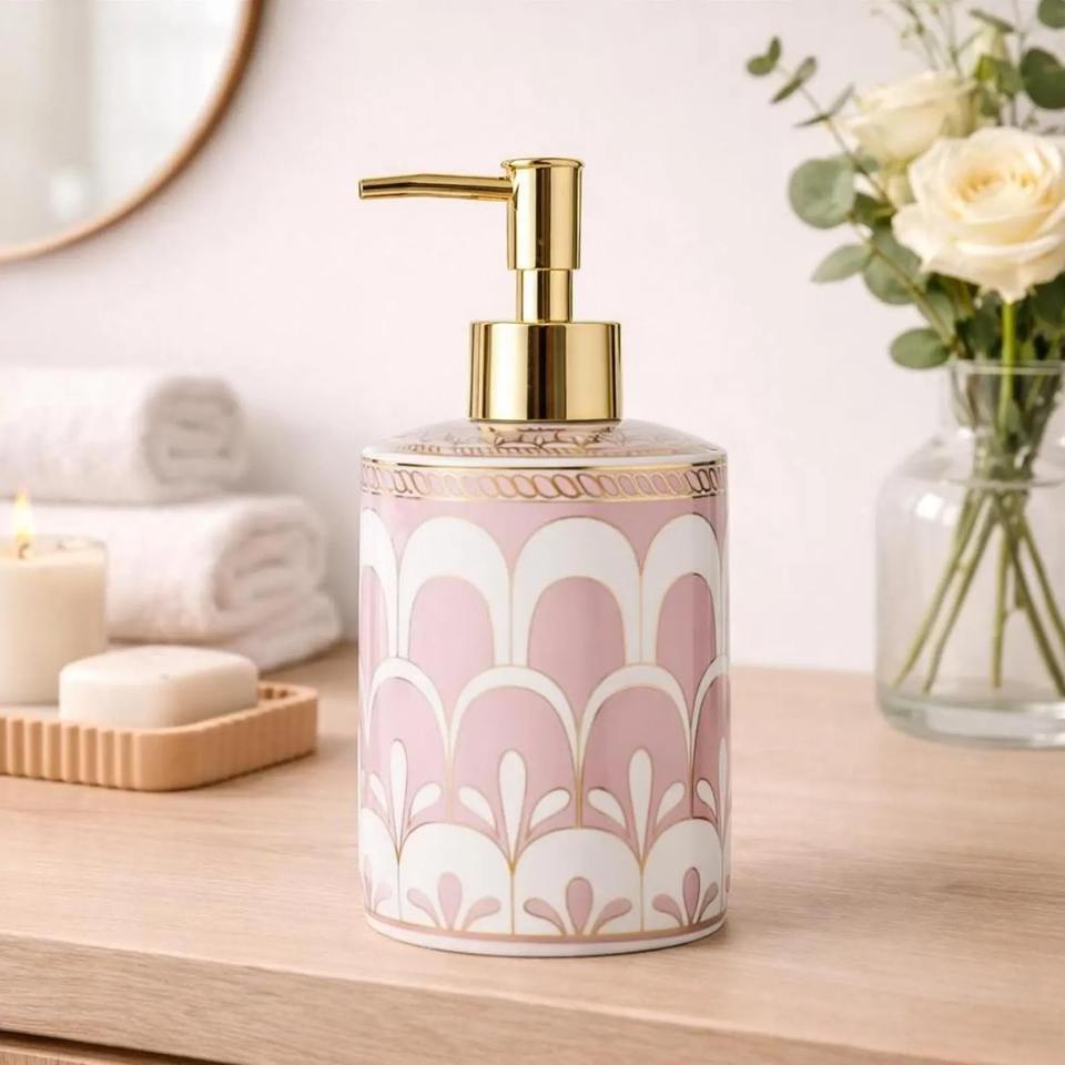 Distributeur de lotion en céramique rose avec pompe, idéal pour les soins de la peau, pour la salle de bain, le comptoir et comme article cadeau, décoration intérieure, provenance Inde