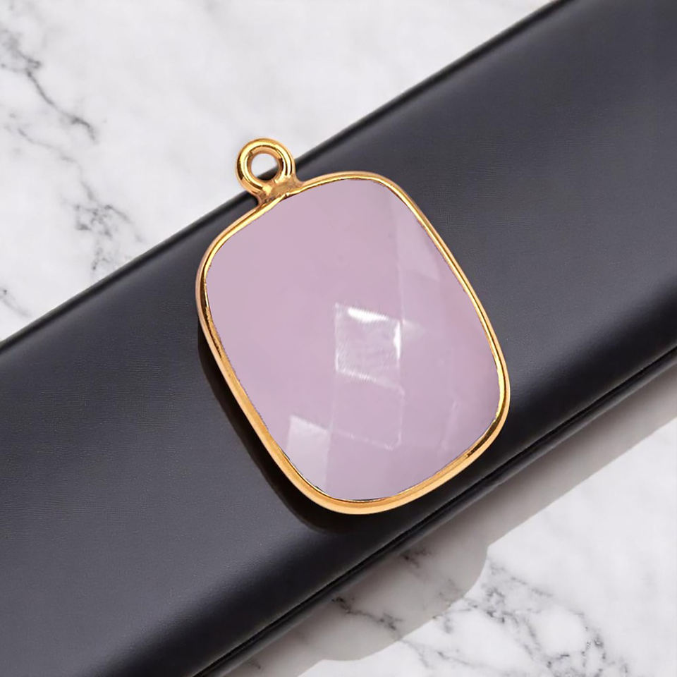 Calcédoine rose coussin Rectangle lunette pendentif à breloque bijoux en argent mode pendentif fait main pour les femmes faisant des bijoux à bricoler soi-même