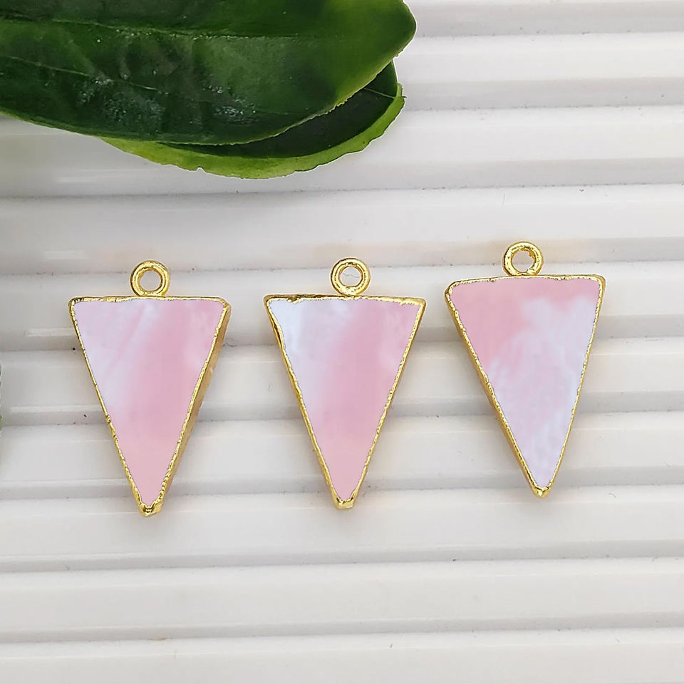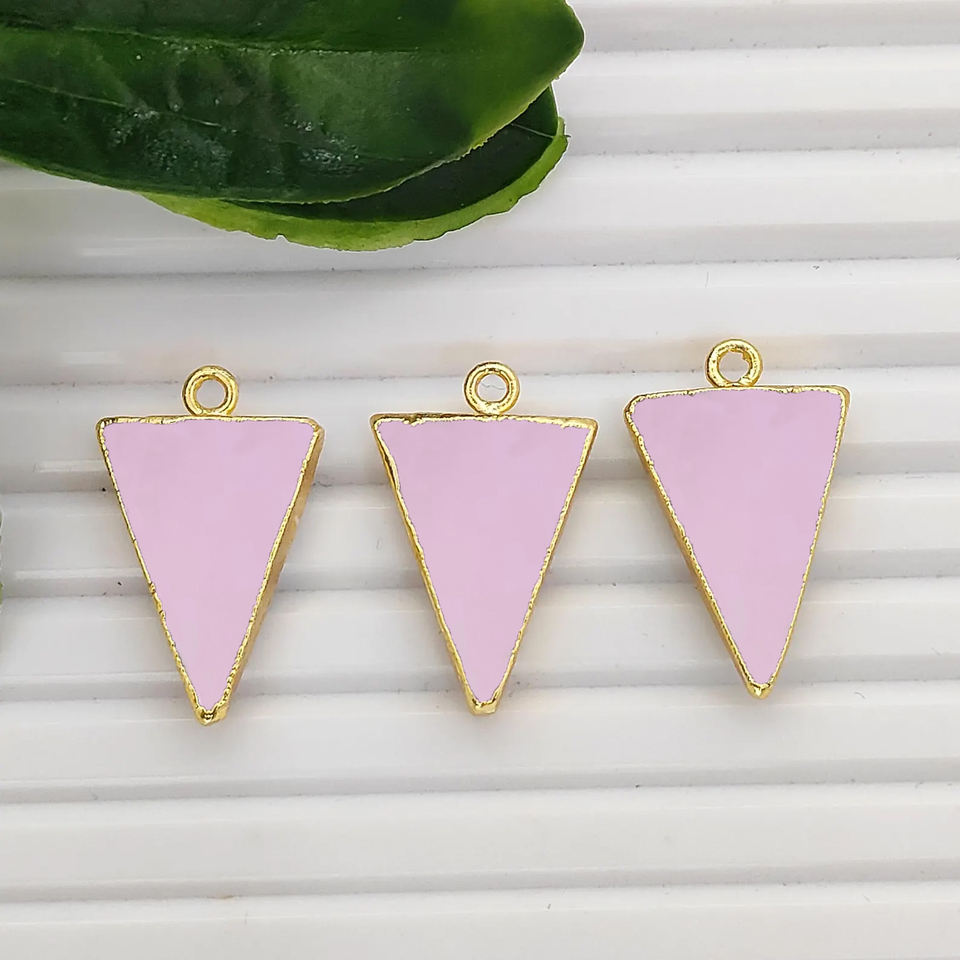 Breloque en calcédoine rose en forme de triangle, plaquée or, 20x15mm, faite à la main, connecteur pour la fabrication de bijoux
