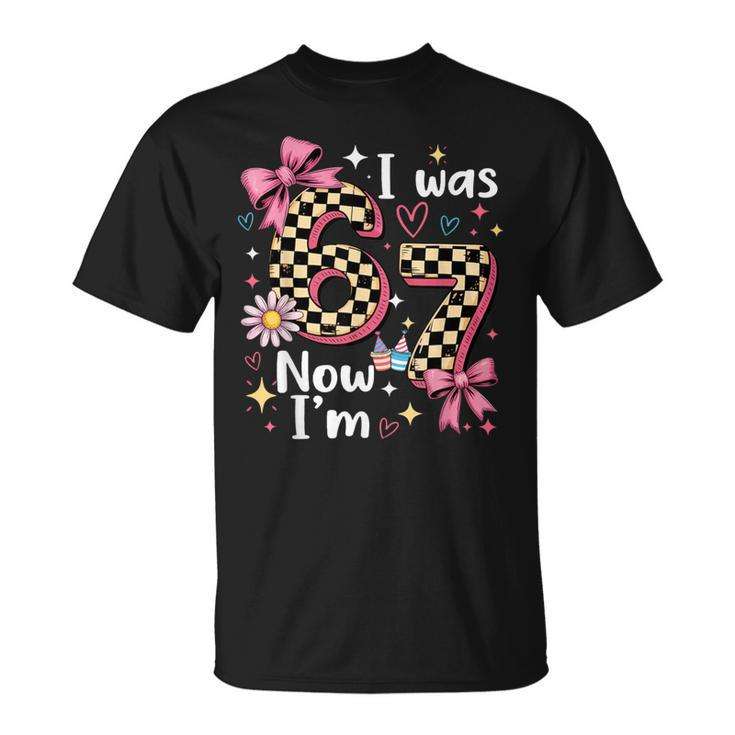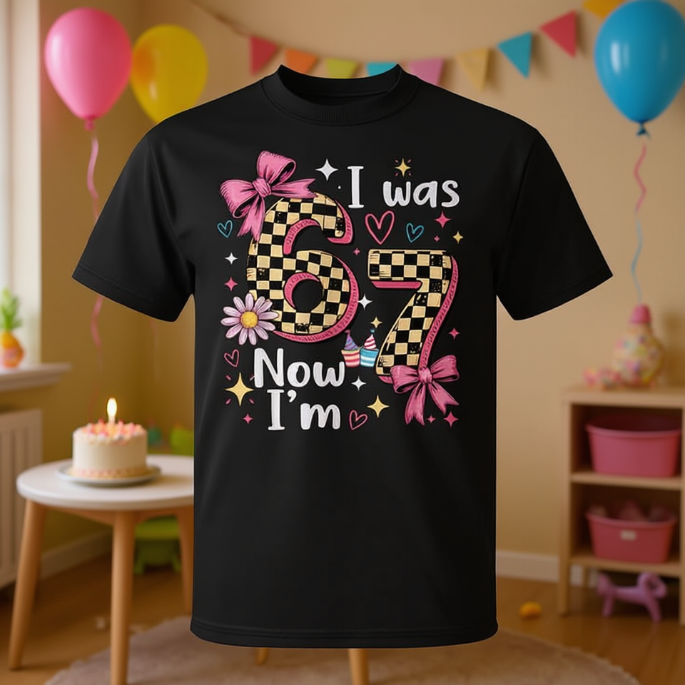 T-shirt rose à carreaux « J'avais 6 ans, maintenant je suis 7 » pour filles de 6 à 7 ans, personnalisable, vêtements promotionnels