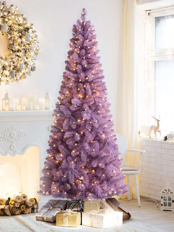 Sapin de Noël rose à charnière sapin canadien artificiel arbre de Noël rose corsé léger