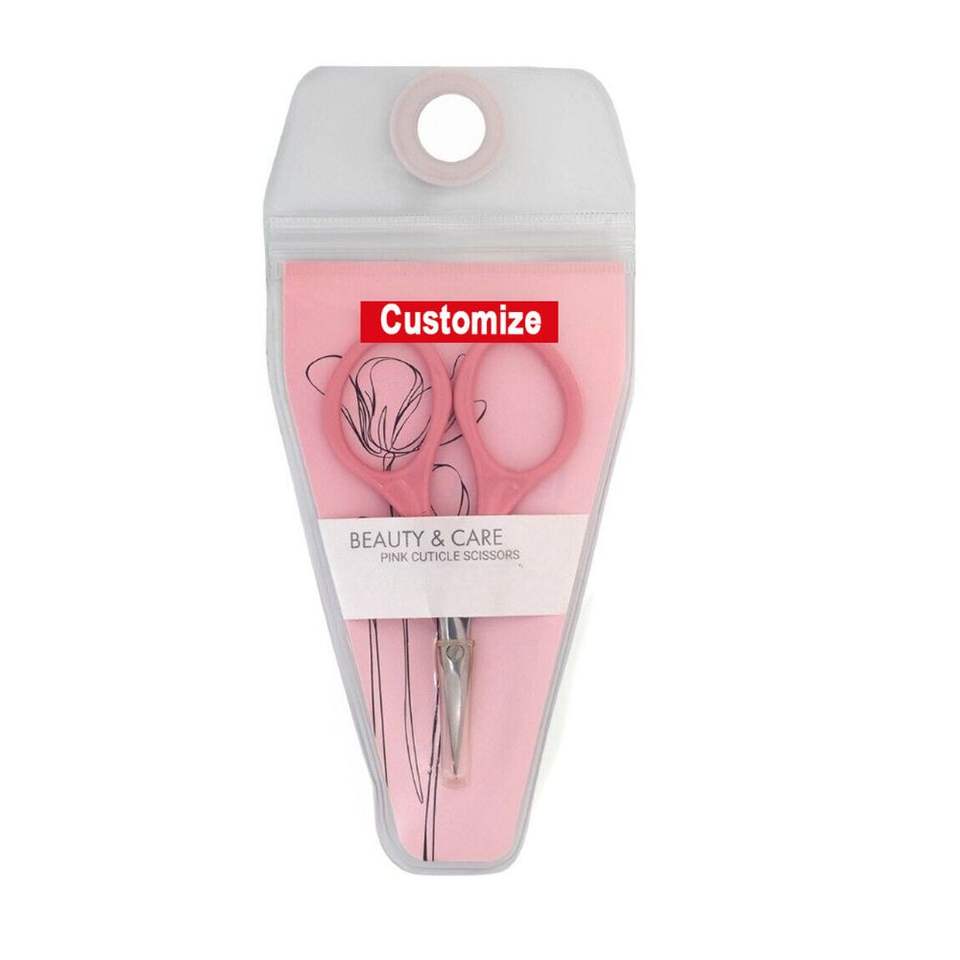 Ciseaux à cuticules roses à pointe fine, en acier inoxydable courbé, outil de manucure professionnel pour salon, logo personnalisé