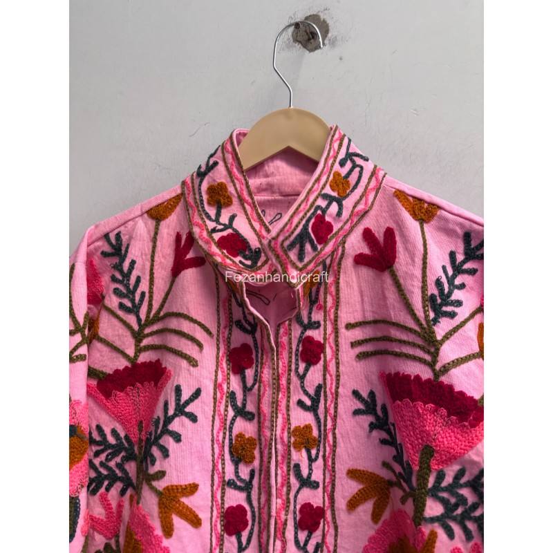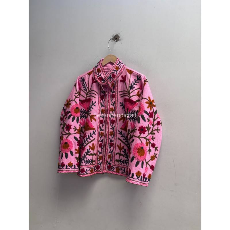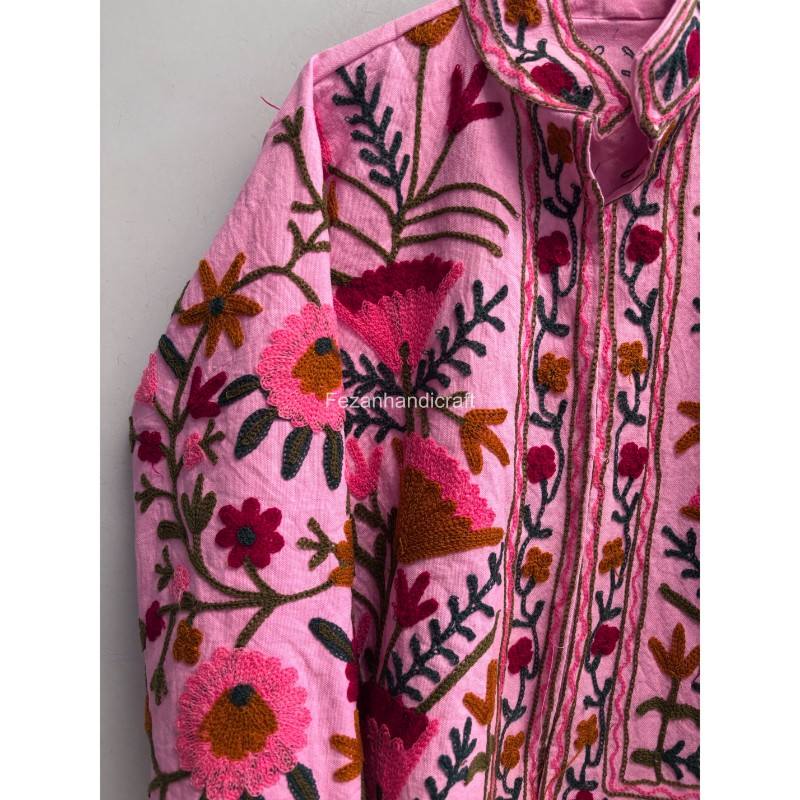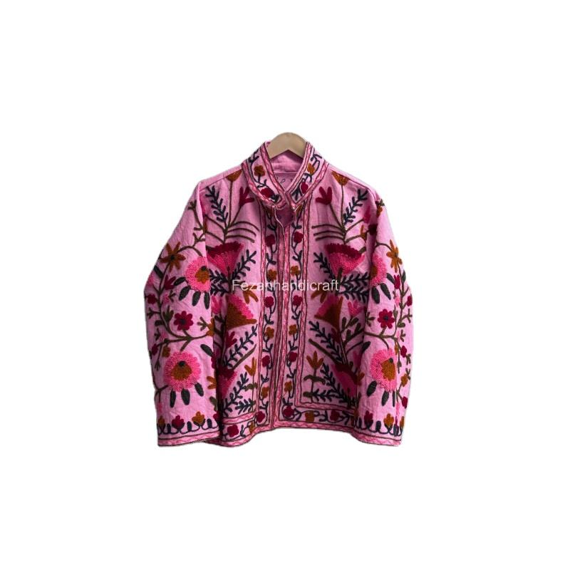 Veste courte en coton 100% de couleur rose, cousue à la main, unisexe, manteau d'hiver, broderie ouzbèke, veste Suzani, vestes pour femmes