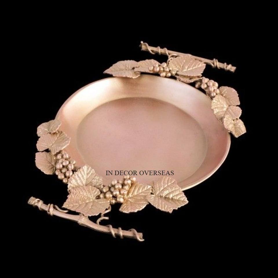 Bol de service alimentaire de luxe en métal de haute qualité, design de feuilles et de fleurs avec revêtement en poudre de couleur rose, décoration de table, centre de table