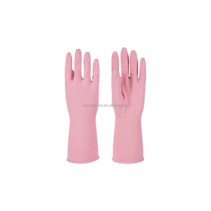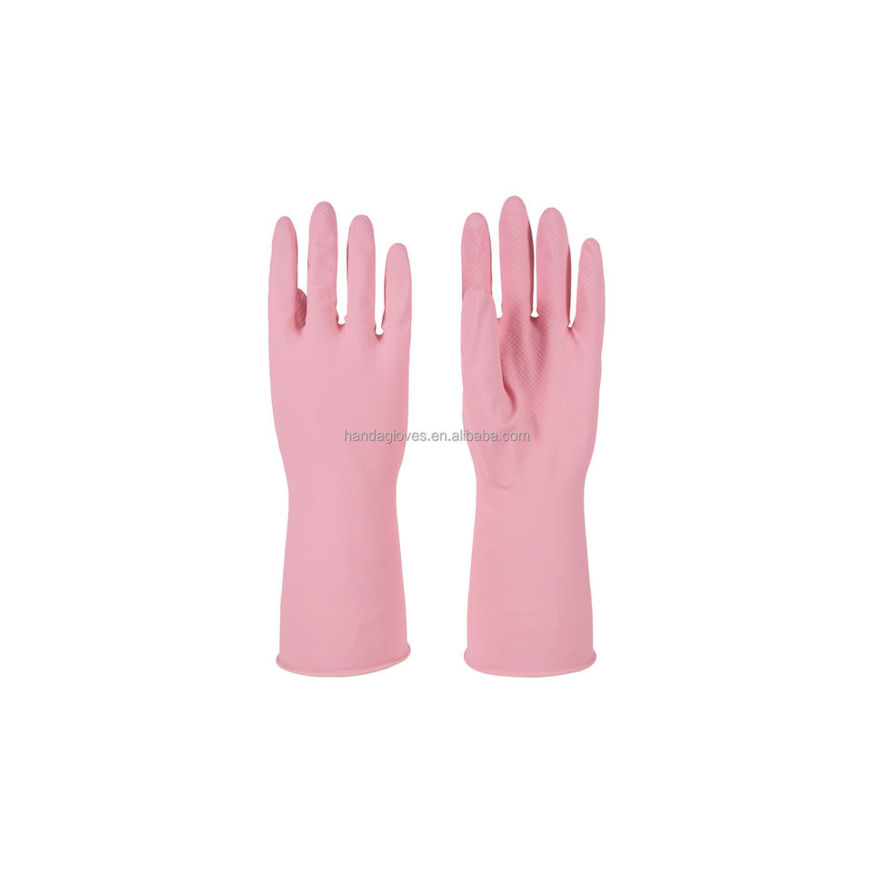 Gants en caoutchouc de couleur rose coton floqué 60g ménage Latex cuisine nettoyage gants en caoutchouc