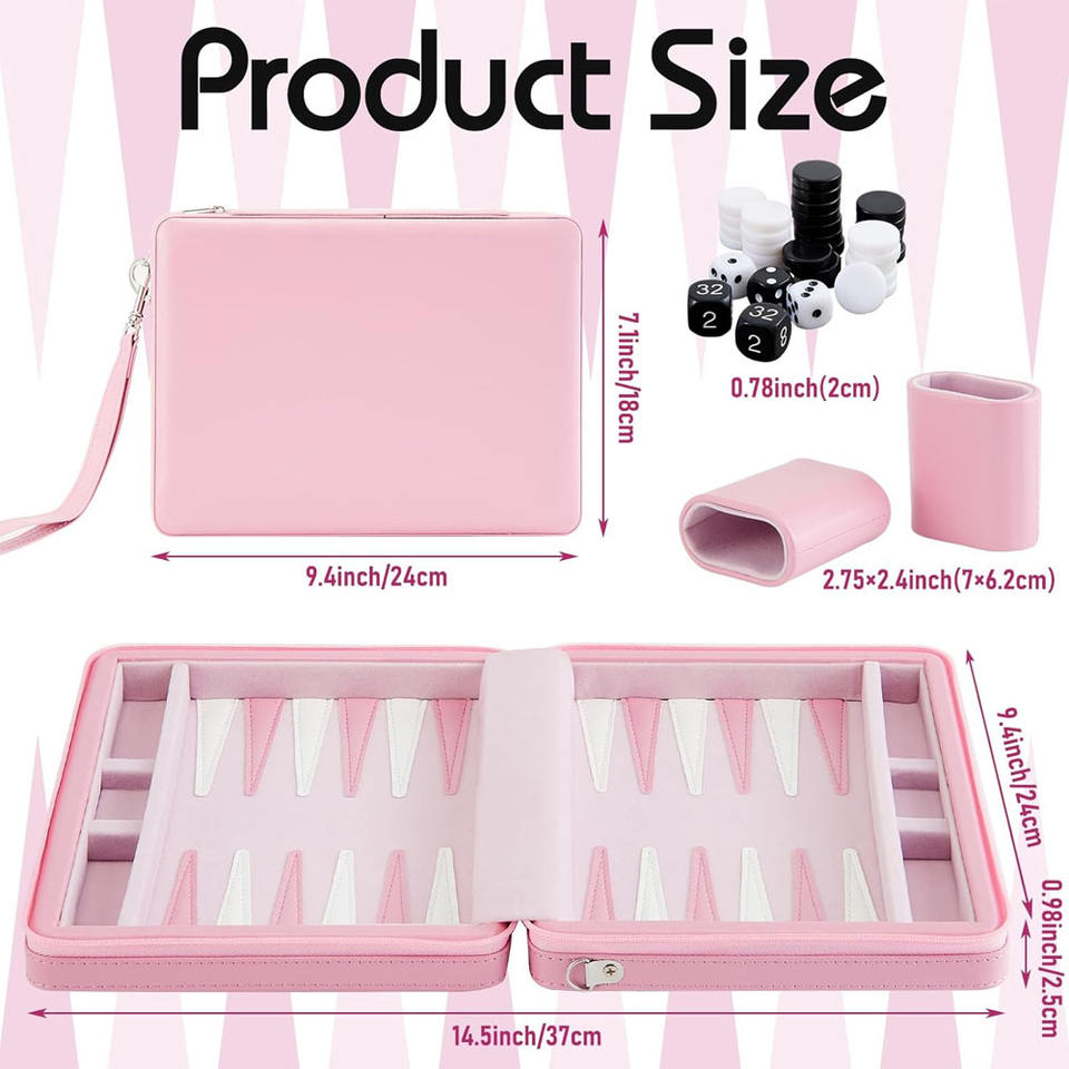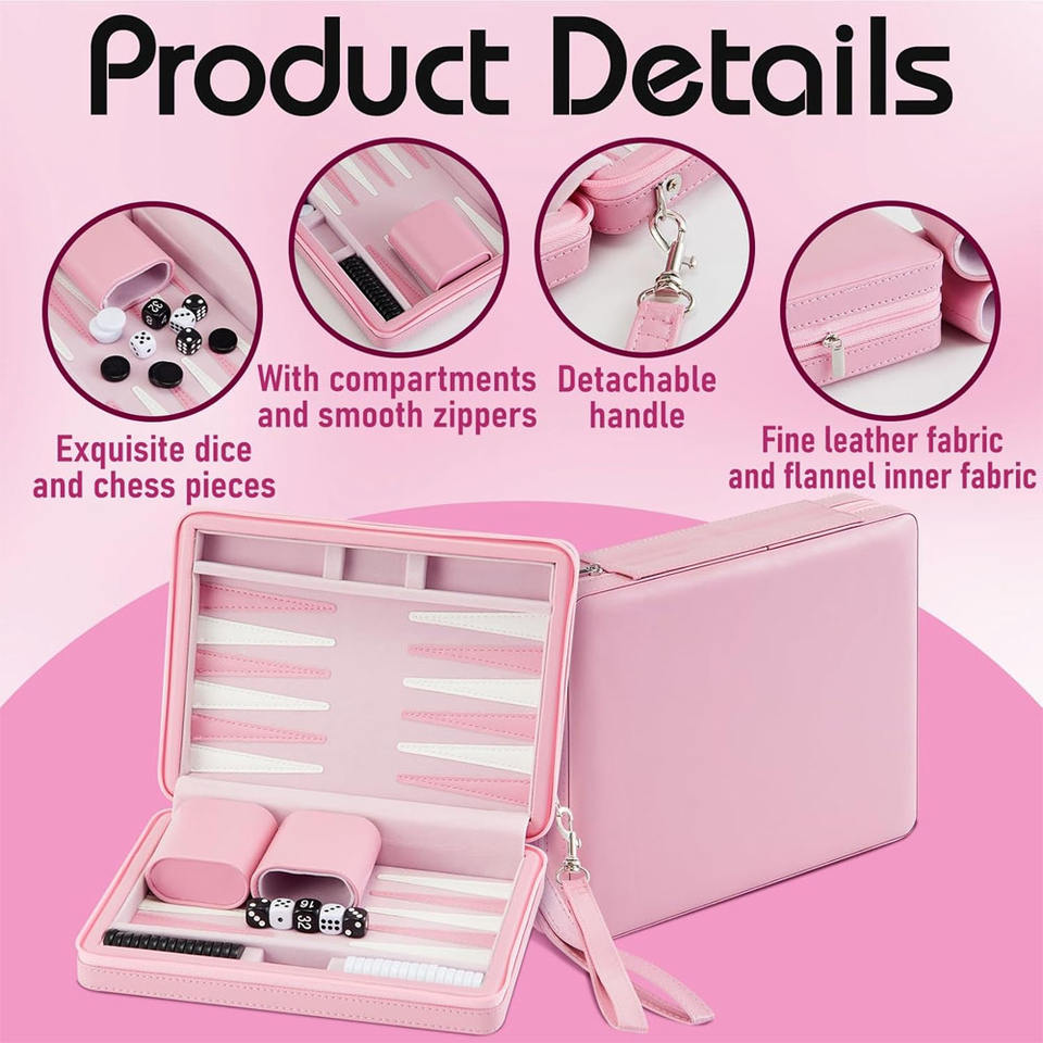 Nom du produit:Ensemble de backgammon de voyage de couleur rose, jeux de société portables