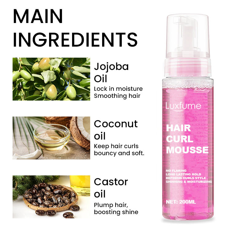 Mousse à friser personnalisée rose Mousse activatrice de boucles de vague de cheveux afro pour cheveux bouclés 200ml