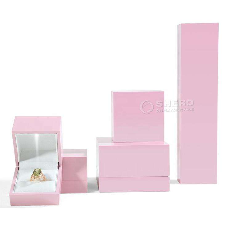 Boîte à bijoux en plastique rose personnalisée avec logo pour bague, pendentif, bracelet, collier, boucles d'oreilles, boîtes à bijoux