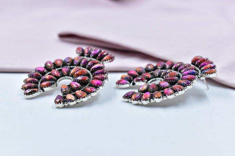Boucles d'oreilles en argent sterling et turquoise Dahlia rose, boucles d'oreilles en argent pour femmes, bijoux en pierres précieuses, cadeau