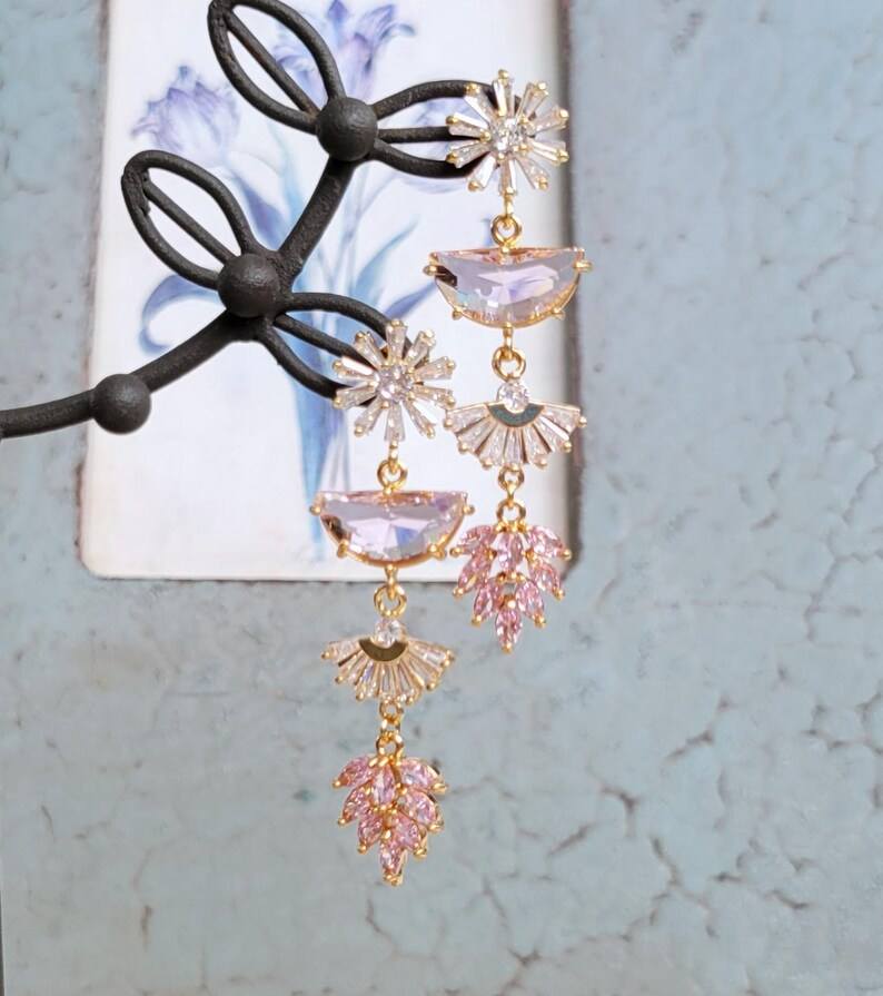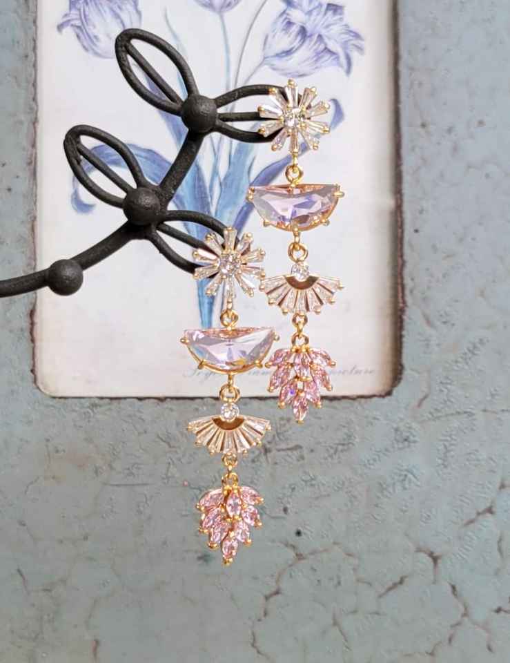 Boucles d'oreilles pendantes roses CZ Flower Stud Boucles d'oreilles de mariage d'inspiration antique en argent sterling 925 plaqué or 14 carats élégantes