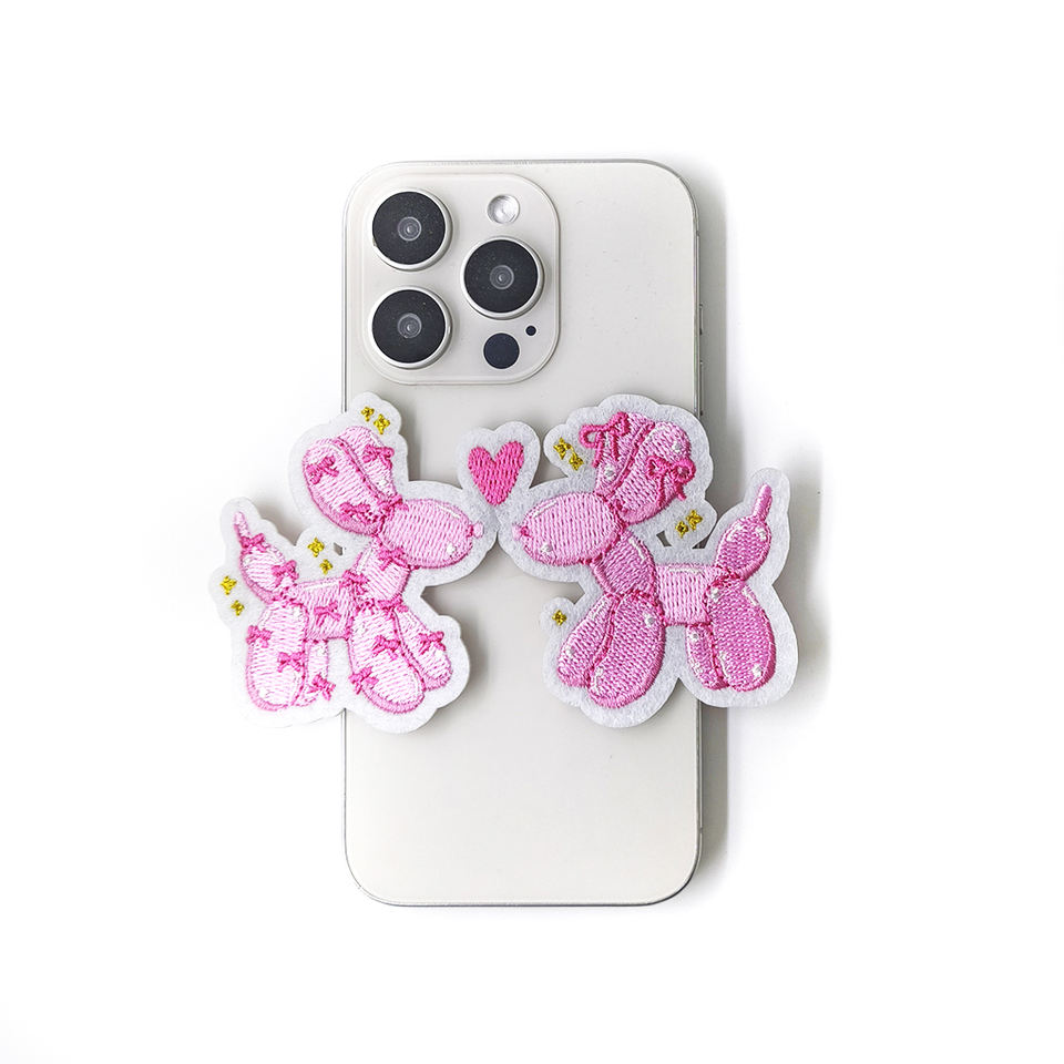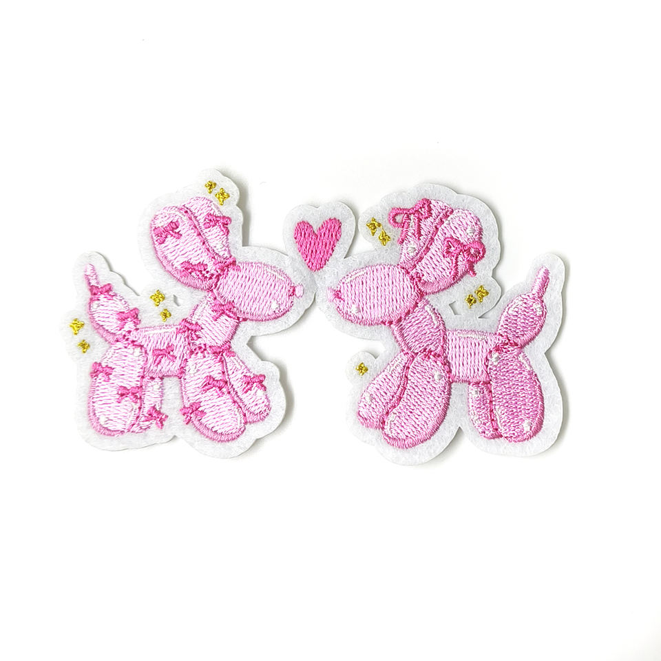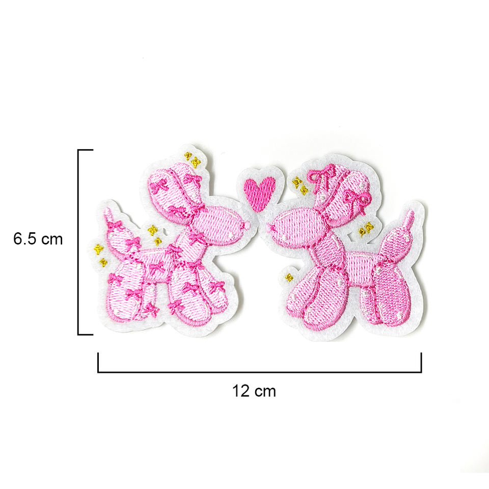 Patch thermocollant brodé en forme de cœur de chien à double ballon en toile rose pour chapeaux