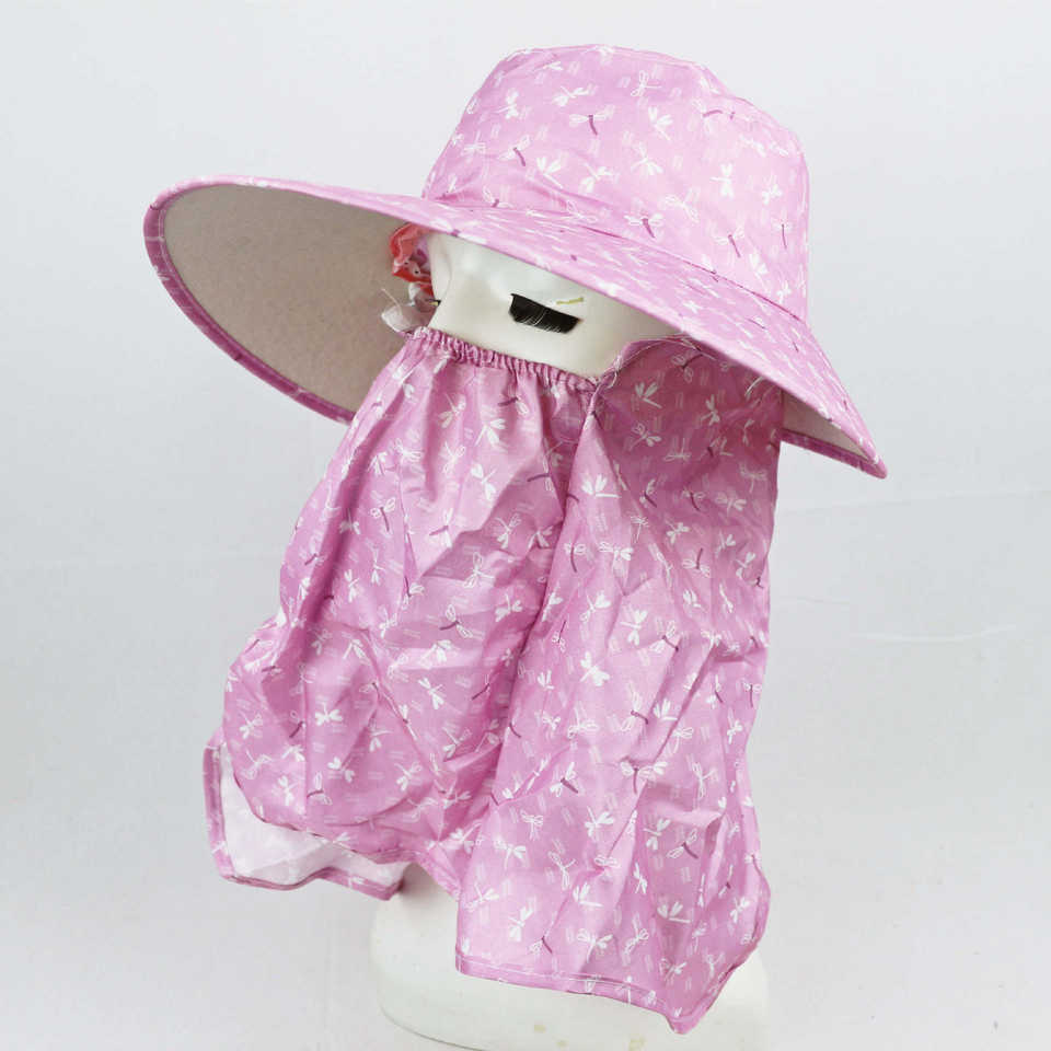 Chapeau seau imprimé libellule rose avec protection du cou pour la protection solaire en extérieur, vêtements décontractés pour femmes adultes
