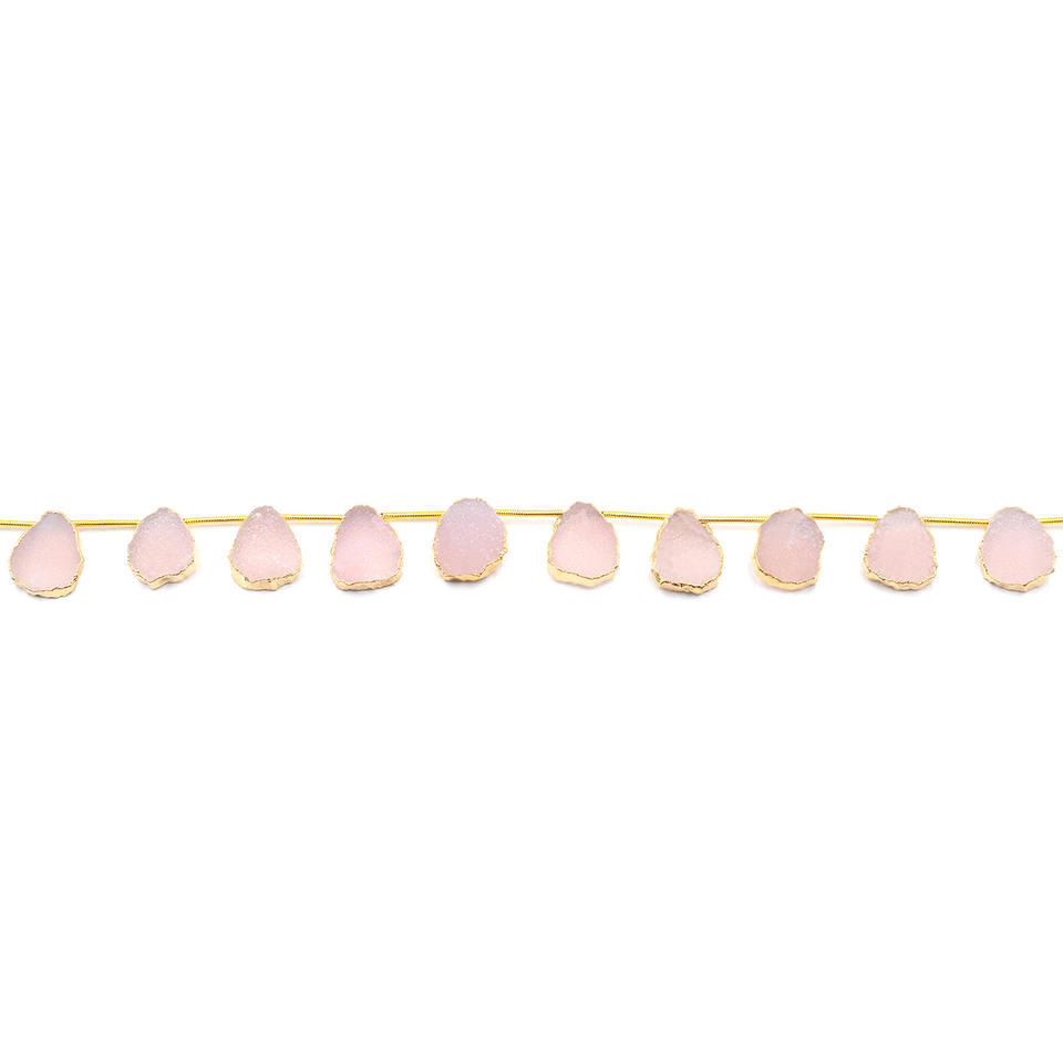 Nom du produit:Fil de 10 perles plaquées or, percées sur le côté, avec druse rose.