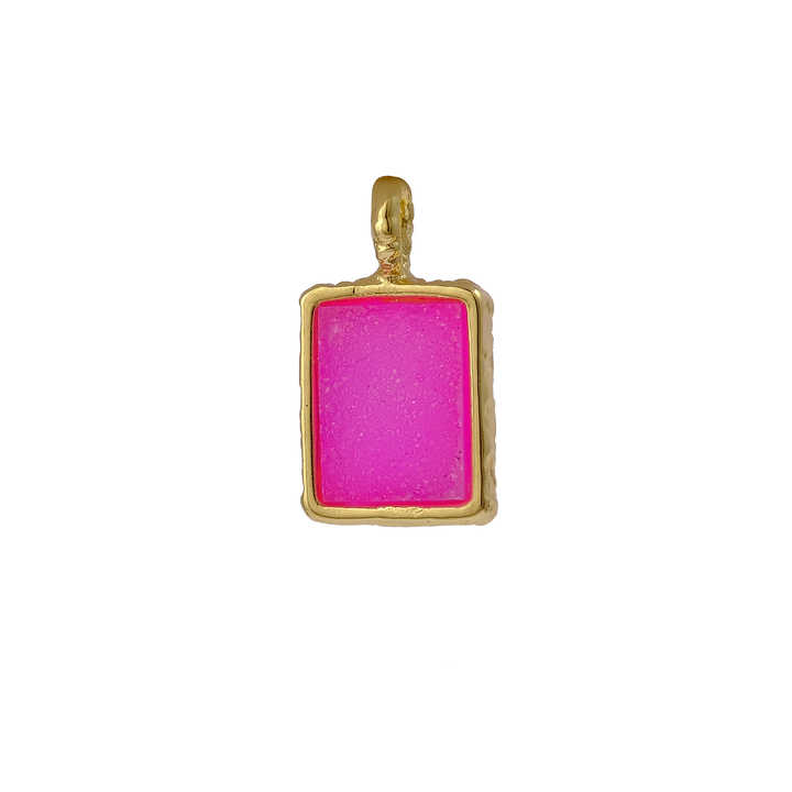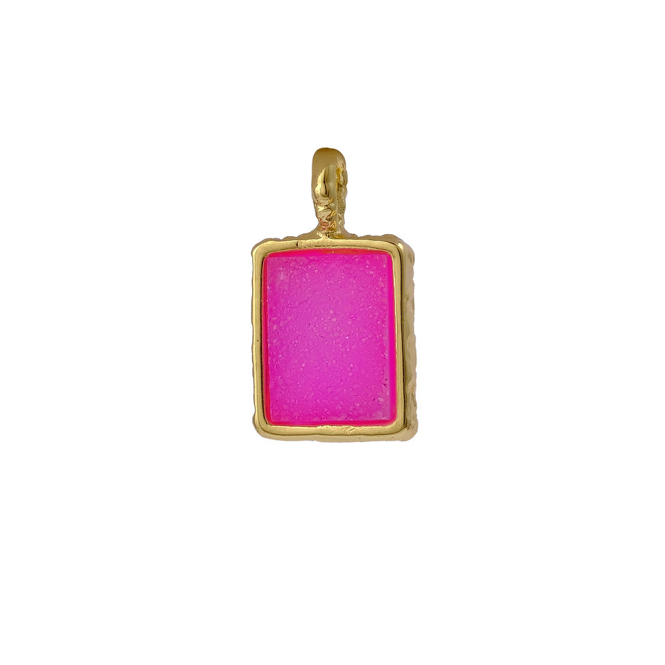 Pendentif Quartz Druzy Rose avec Lunette Rectangle Plaqué Or Texturé Charme Gras pour Bijoux de Déclaration et Fournitures de Bricolage en Gros