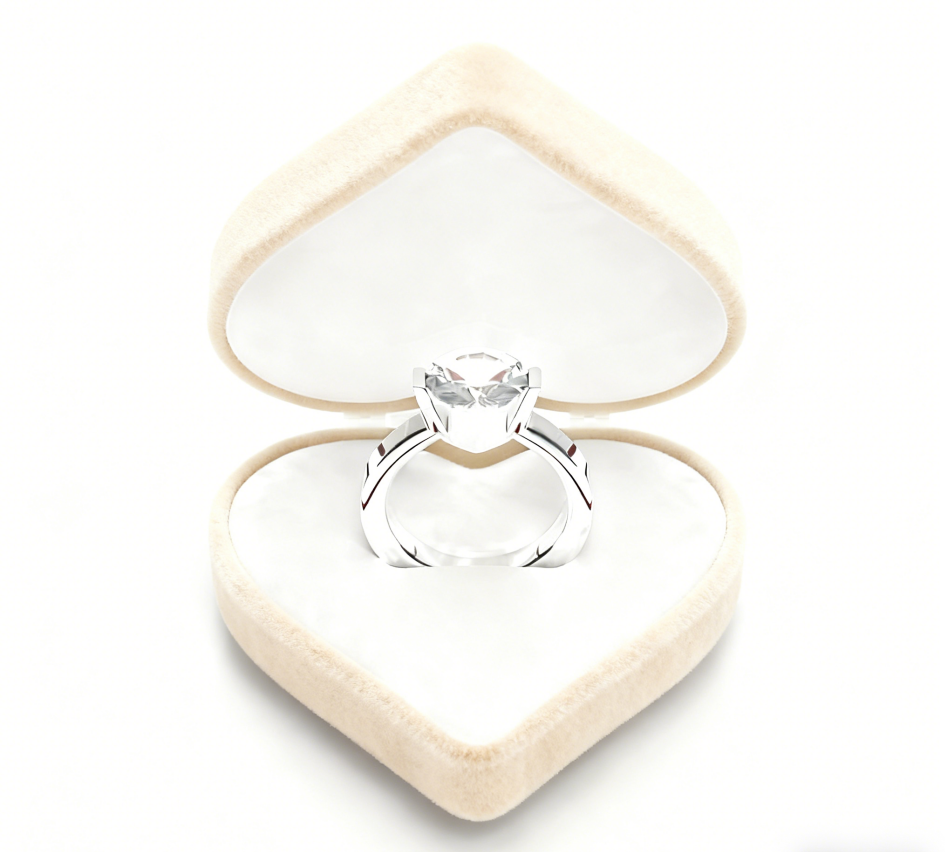 Boîte à bijoux en velours rose en forme de cœur, personnalisée par Pink Factory, avec fermeture à charnière et ruban, idéale pour les bagues et les colliers.