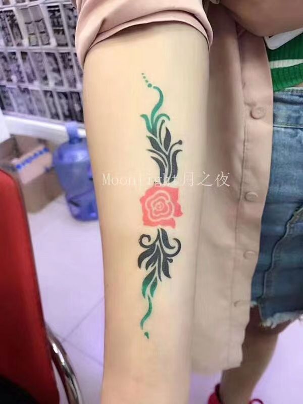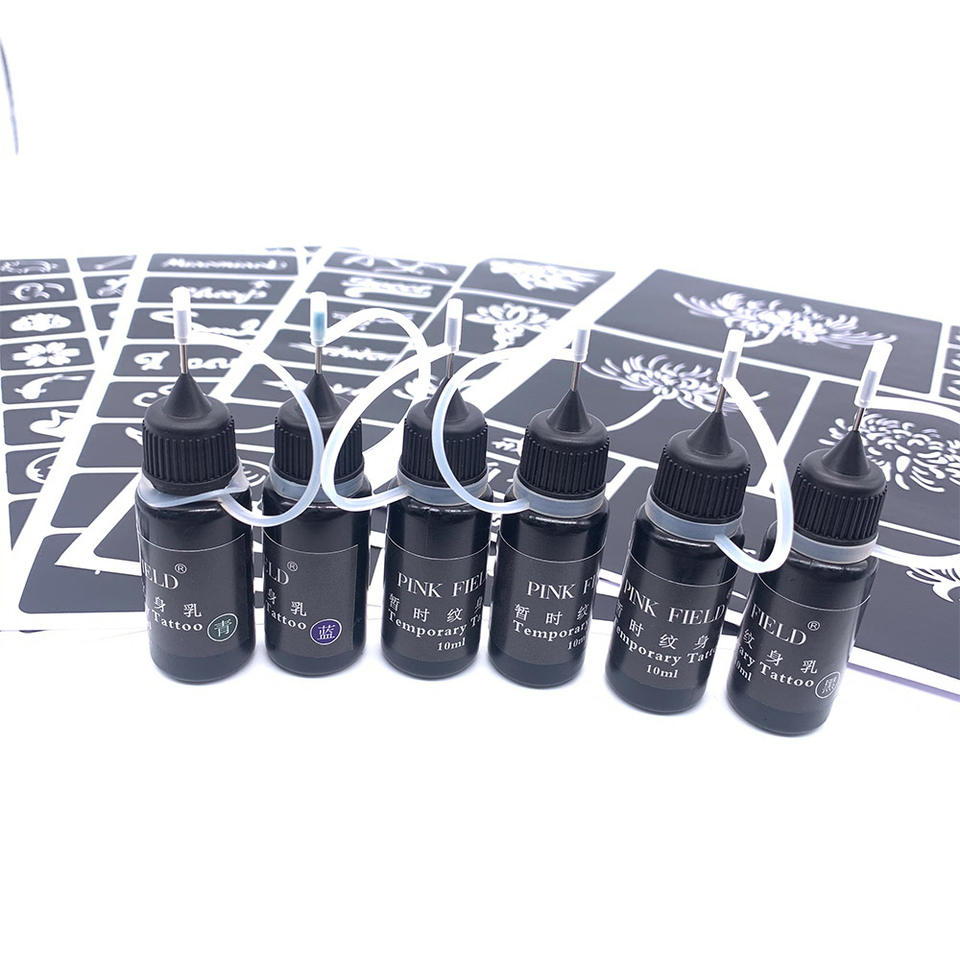 Tatouage temporaire rose à appliquer soi-même avec pochoir à jet d'encre ajouré et modèle crème jus
