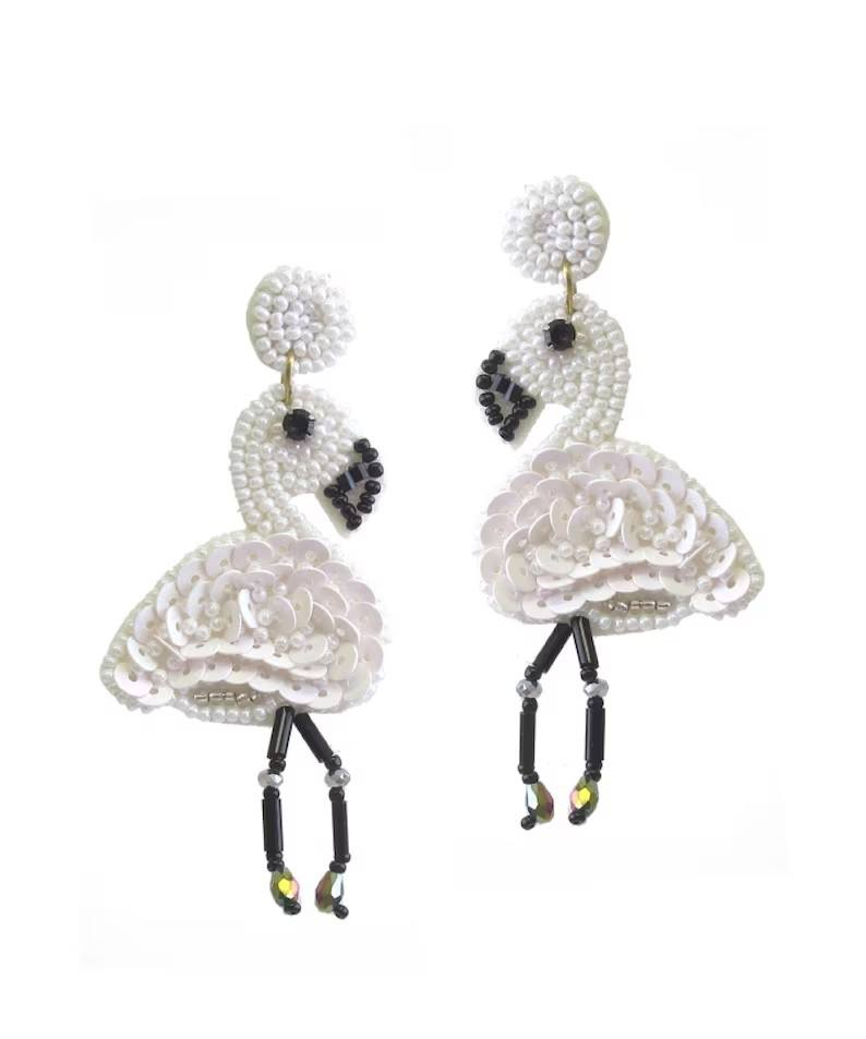 Boucles d'oreilles multicolores flamant rose perlées et ornées de pierres, légères, faites à la main, classiques, tendance, de haute qualité, idéales pour les vacances d'été