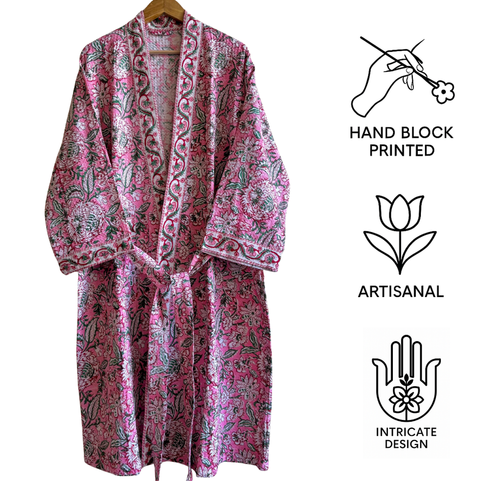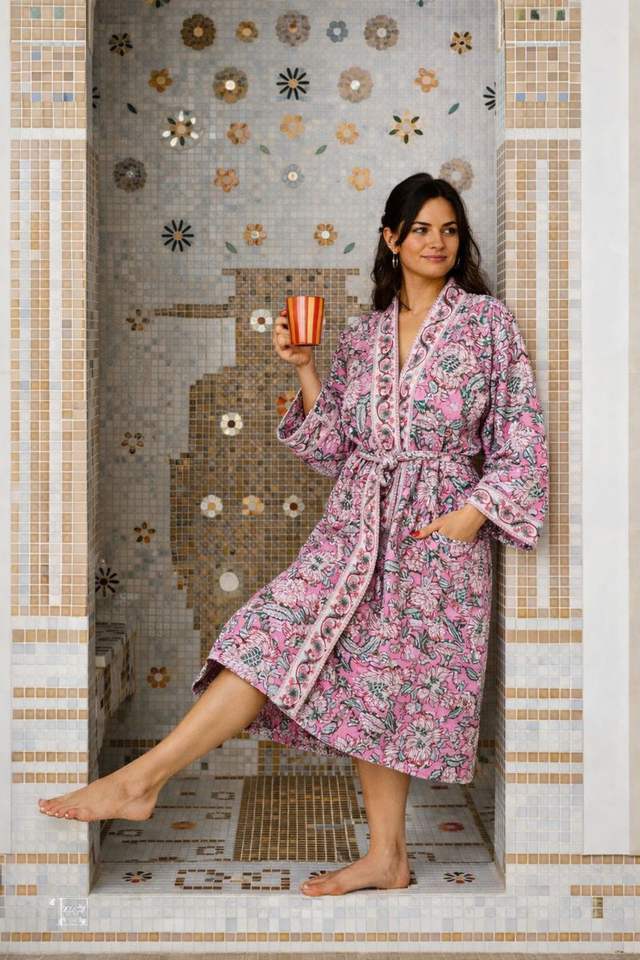 Peignoirs artisanaux durables en coton 100% écologique, imprimés à motifs floraux roses, gaufrés, compressés, séchage rapide, pour le voyage