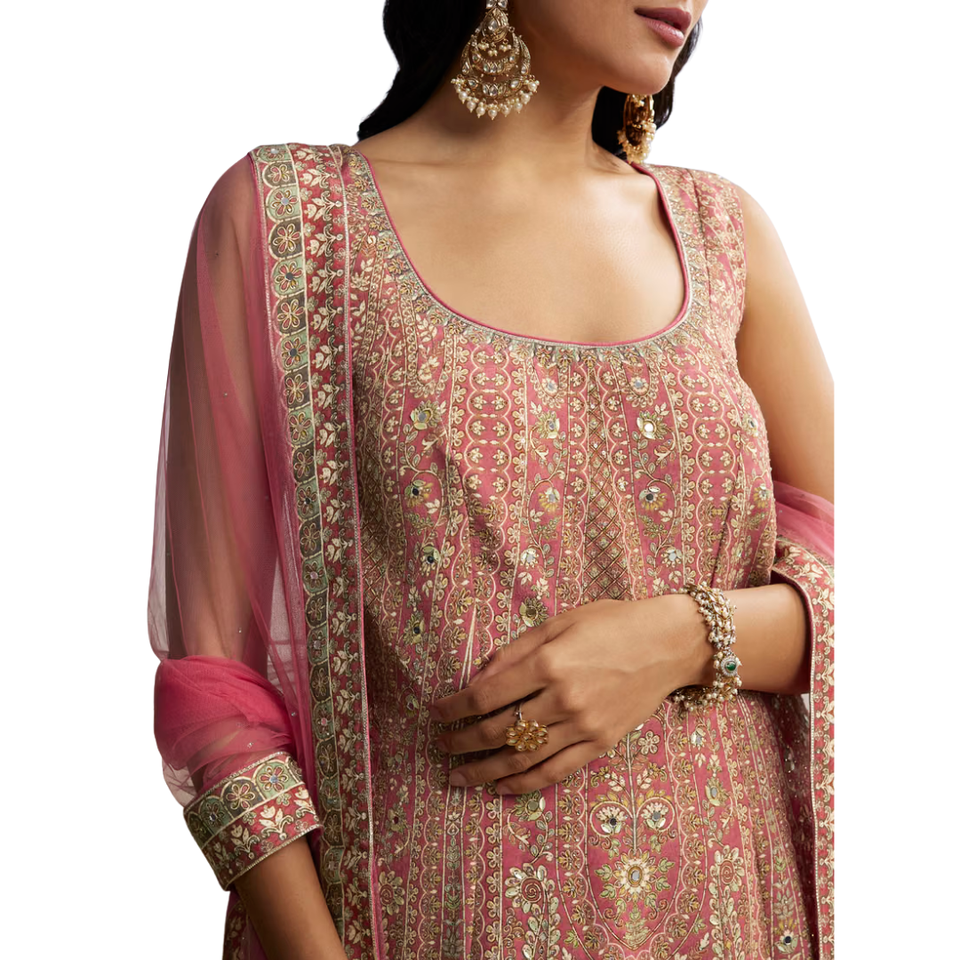 Vente de gros Ensemble Palazzo floral rose avec Dupatta Vêtements ethniques pour femmes Vêtements OEM Fournisseur d'usine Tenue de fête personnalisée