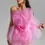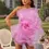 Robe mini en mousseline de soie à imprimé floral rose avec silhouette fourreau et décoration florale