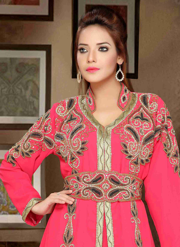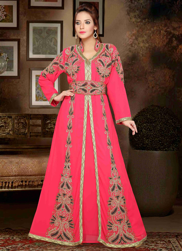 Pink Georgette Embroidered Zari Work Islamic Kaftans