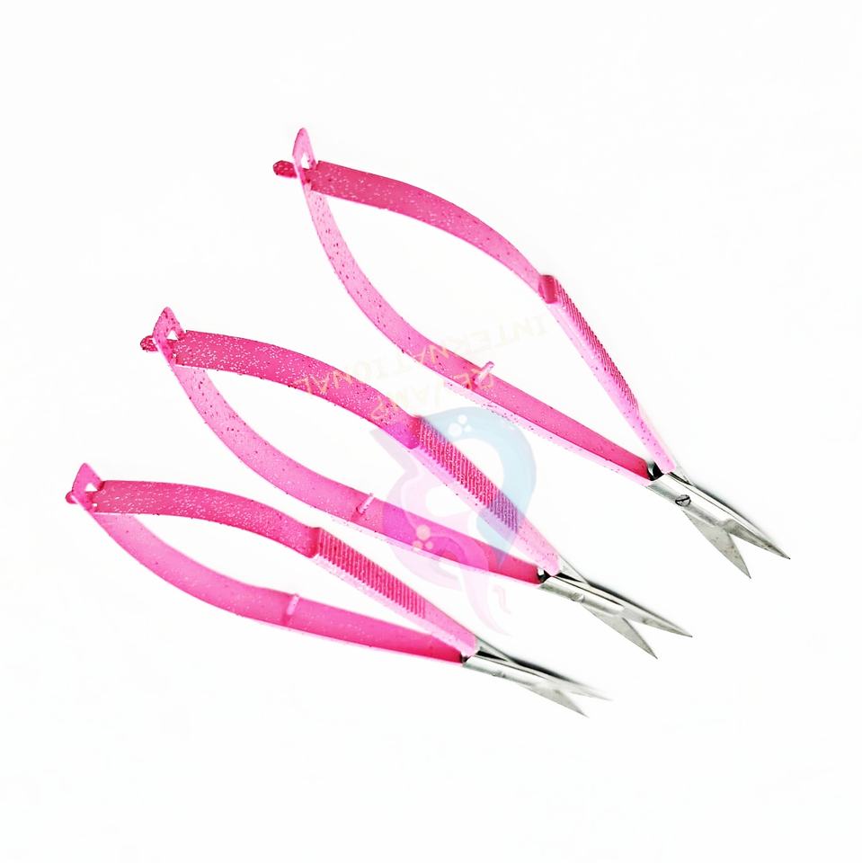 Ciseaux à cuticules pour manucure, en acier inoxydable, à lame courbée, rose pailleté, pour droitiers, durables, pour la coupe des ongles et des cils