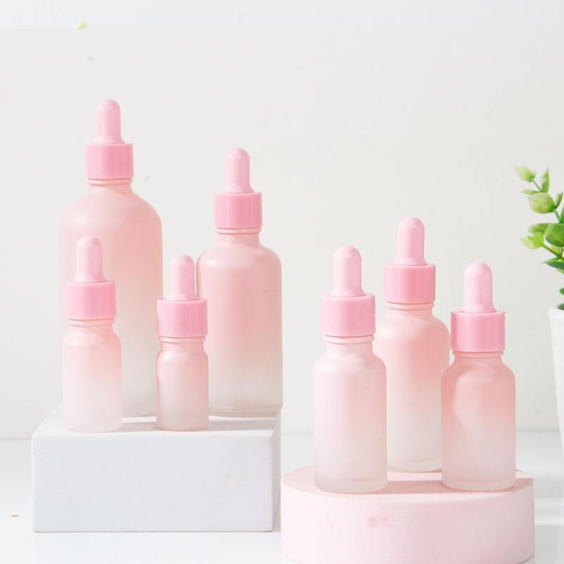 Flacon compte-gouttes vide dégradé rose pour huiles essentielles 5ml-100ml, emballage cosmétique en verre pour sérum de soin, volume 10ml