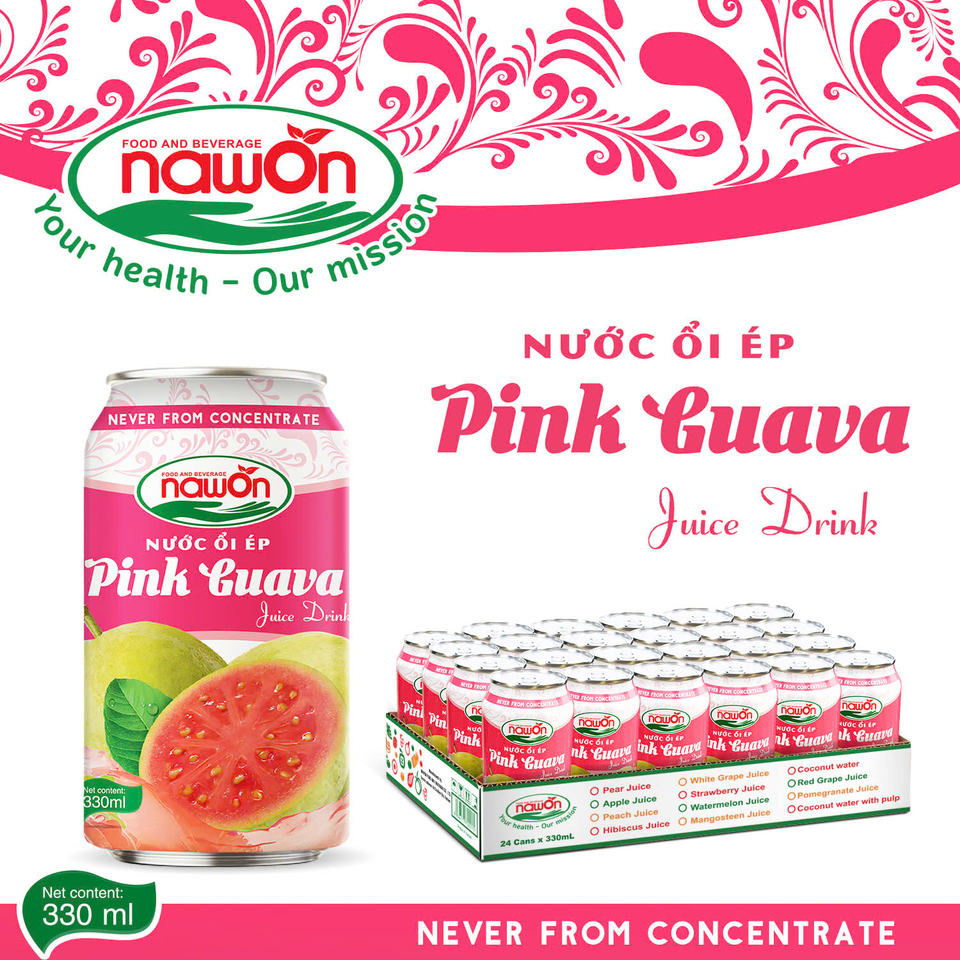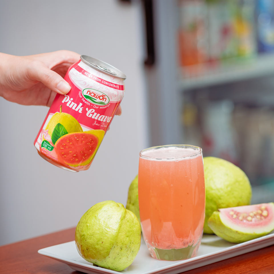 Pink Guava Juice Drink 330ml Can Tinned NAWON Vietnam Beverage Factory Fruit & Vegetable Juice Wholesale Price Private Label OEM