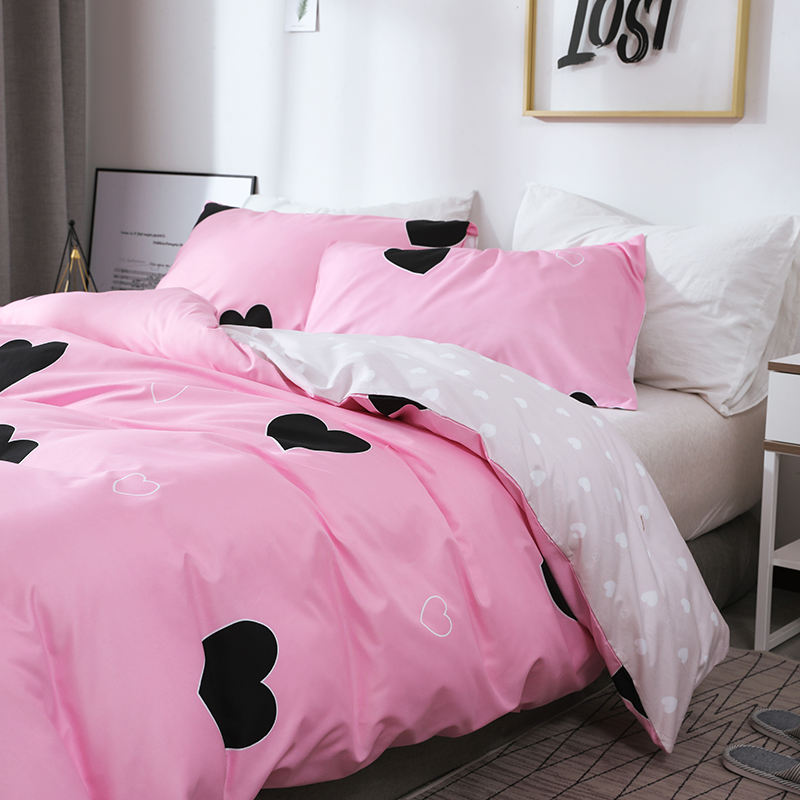 Ensemble de literie imprimé coeur rose Ensemble de housse de couette respirante douce de qualité supérieure