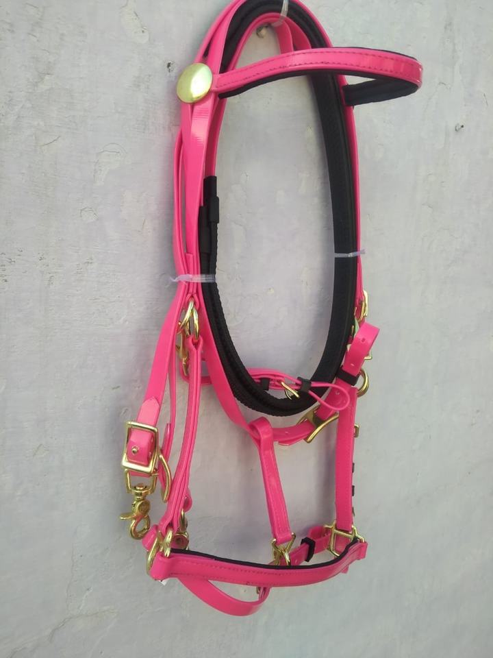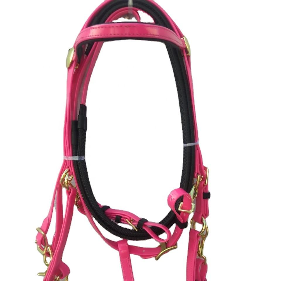 Bride cheval rose en pvc, fabriquée en saison, pas cher, échantillon gratuit, bride cheval en plastique avec contrôleur léger, toutes les couleurs