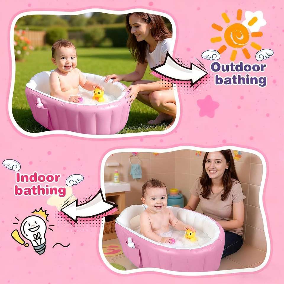Baignoire gonflable rose pour bébé, pliable et portable, avec pompe, pour nouveau-nés de 0 à 6 mois