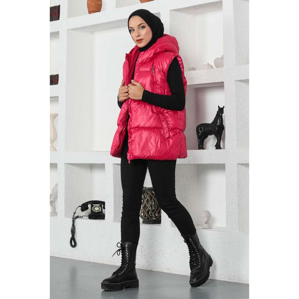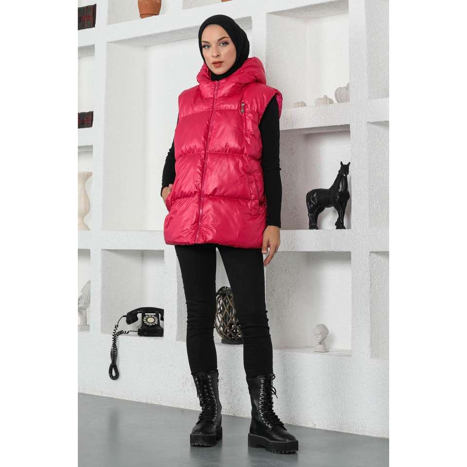 Mega Merchant Gilet gonflable rose pour homme avec veste trench à manches longues et col rond, modèle décontracté 88054