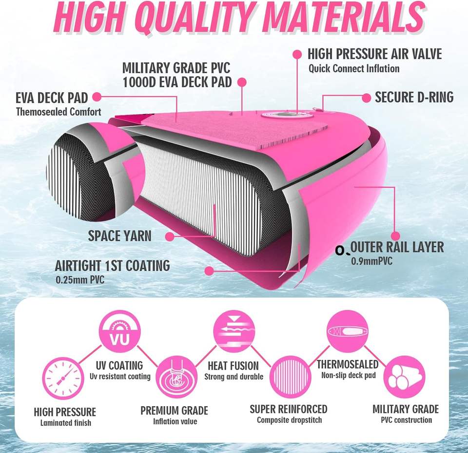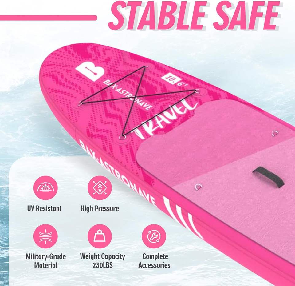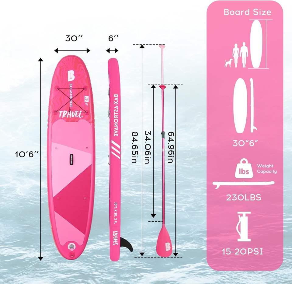 Planche de paddle gonflable rose (SUP) 10'6''x30''x6'' polyvalente et portable, capacité 130 kg