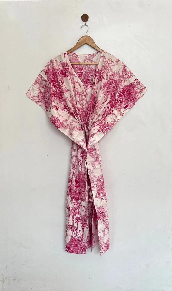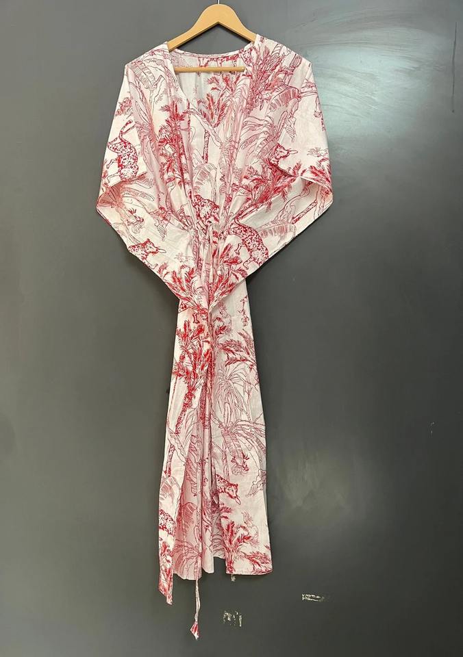 Pink Jungle Print Organic Cotton Sexy Knee Length Caftan Dress for Moms Beach Cover Sleepwear Indian Maxi Gift