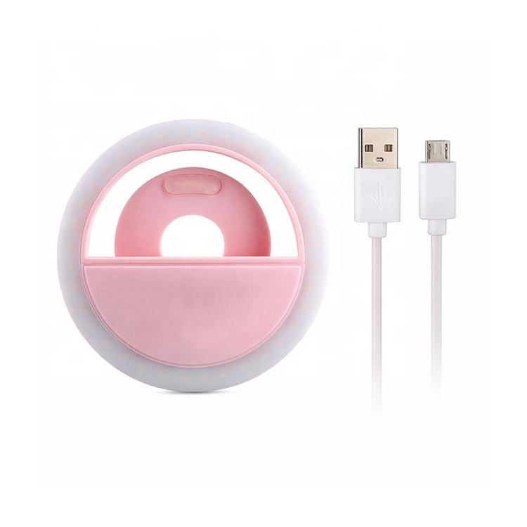 Anneau lumineux LED rose pour Selfie, lumière de remplissage Mobile, Charge USB, téléphone, flashs, lentille, lampes lumineuses
