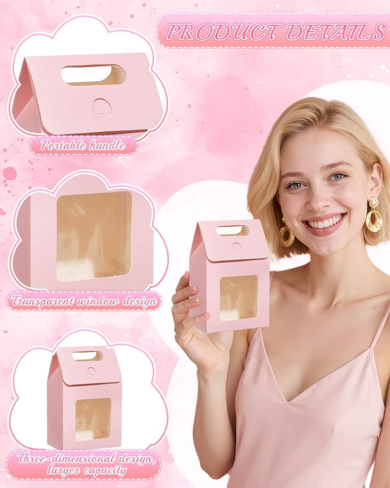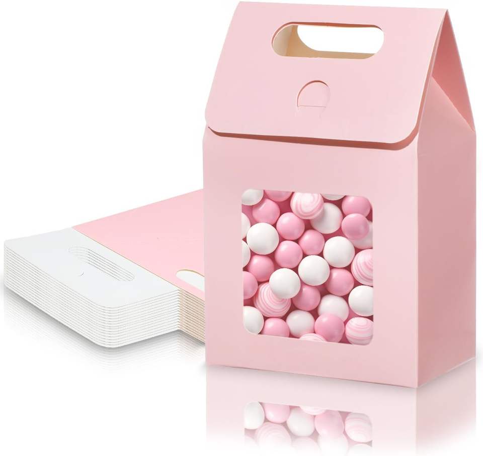 Sacs cadeaux en papier kraft MINI roses avec fenêtre transparente, petites boîtes cadeaux avec poignée, boîtes à bonbons pour Purim, mariage