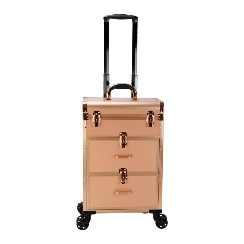 Valise de salon rose en métal avec 4 roues et poignée télescopique pour le rangement à domicile et les voyages