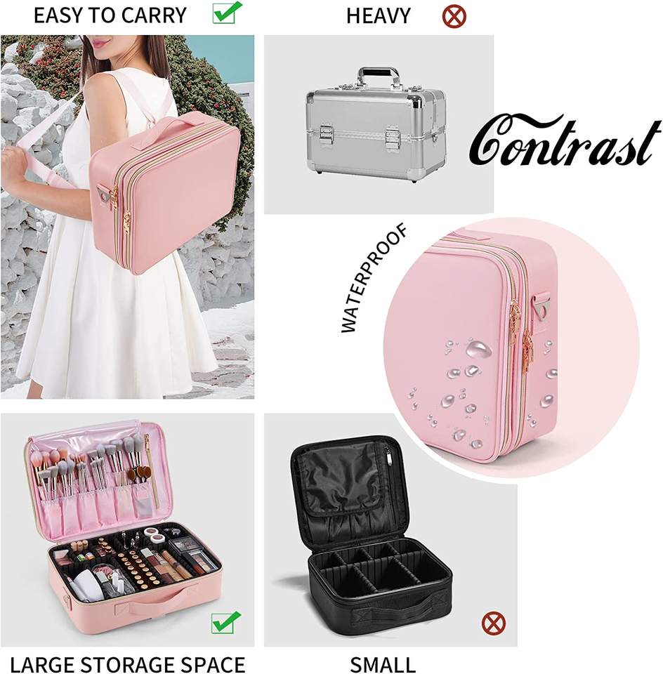 Rose nouvelle grande trousse de maquillage haute capacité trousse à cosmétiques vide voyage maquillage organisateur sac de rangement de maquillage
