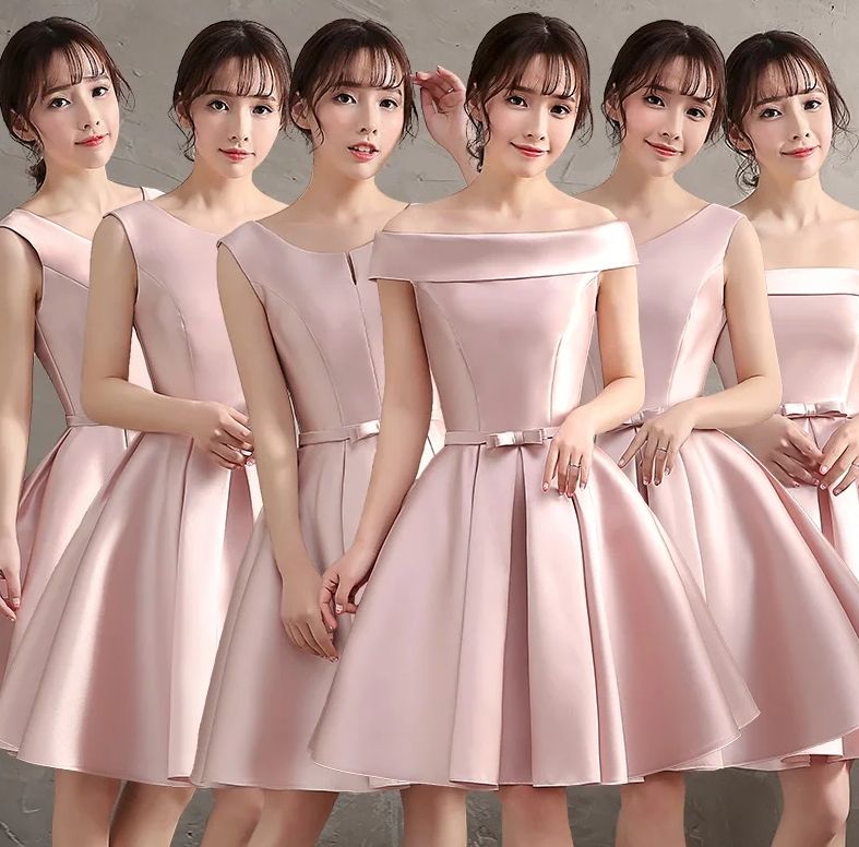 Rose hors épaule robe de demoiselle d'honneur Simple Satin doux arc mariage mariage femme invité robes mode a-ligne courte robe de soirée