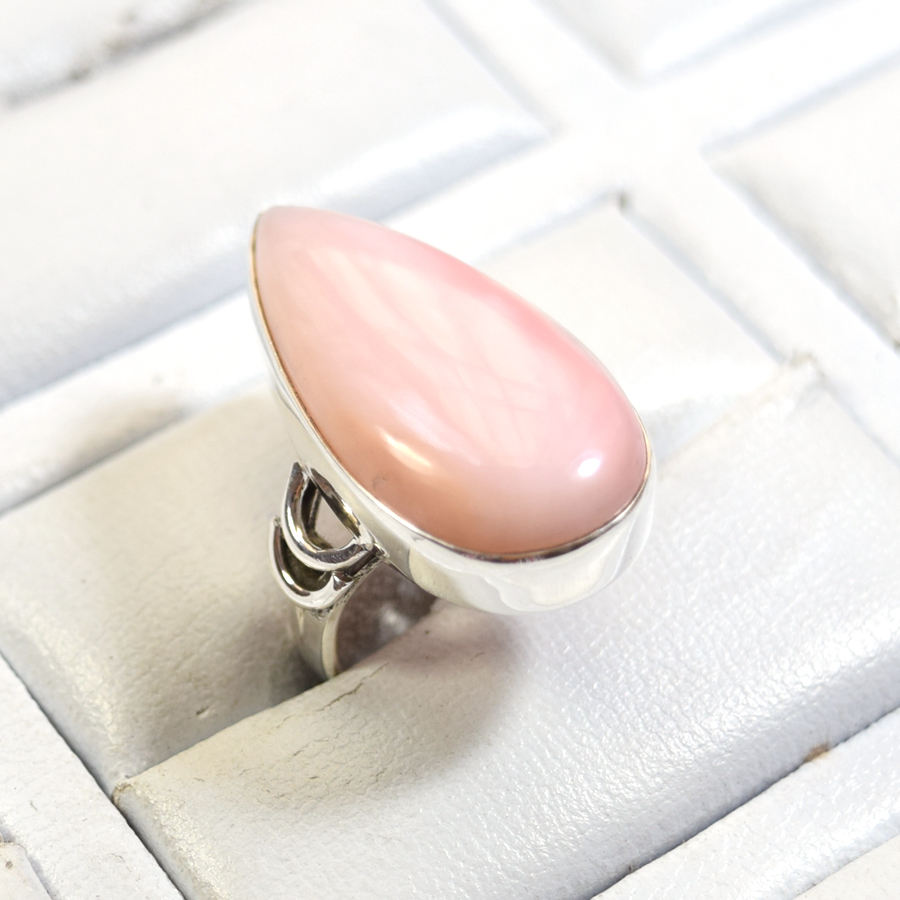 Bijou féminin en pierres précieuses naturelles opale rose, bague en argent pur, authentique, fait à la main