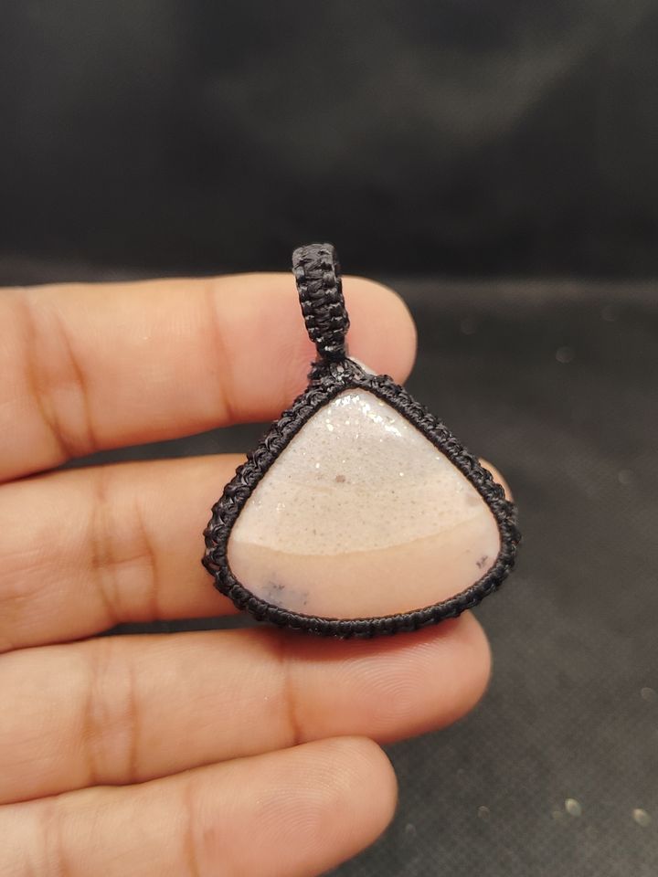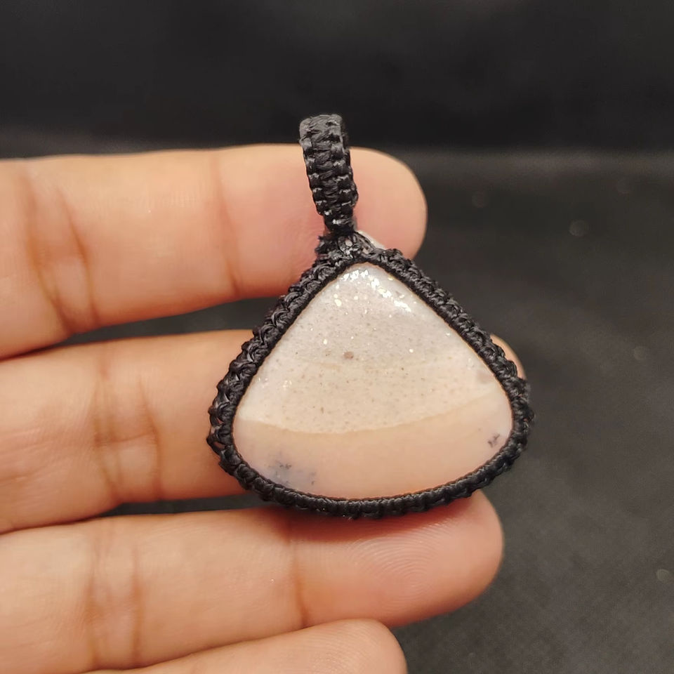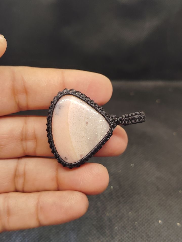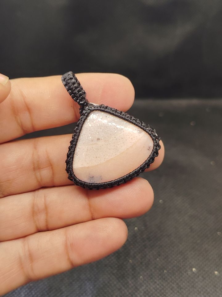 Pendentif en macramé opale rose avec cabochons de pierres précieuses naturelles, pendentif en macramé fait main, lot mixte