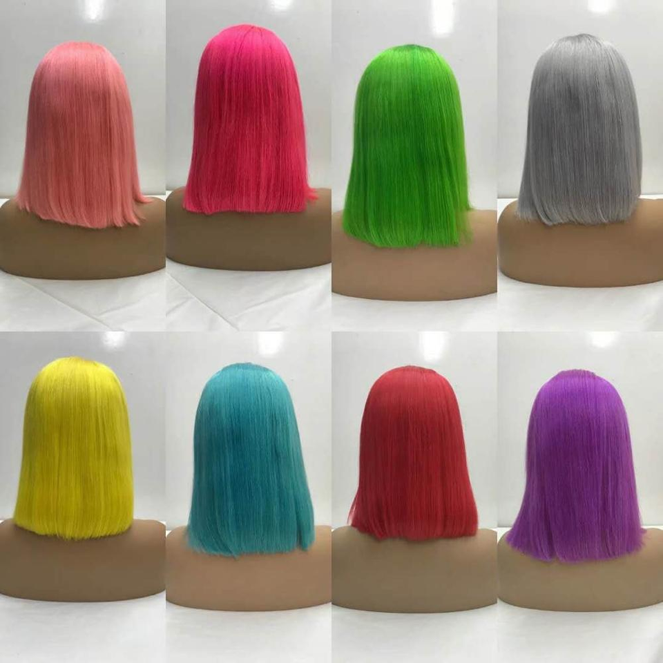 Perruque Bob lace front wig 613 péruvienne naturelle — ali queen, cheveux vierges, couleur rose orange bleu rouge 100% blond, 613, en stock, vente en gros