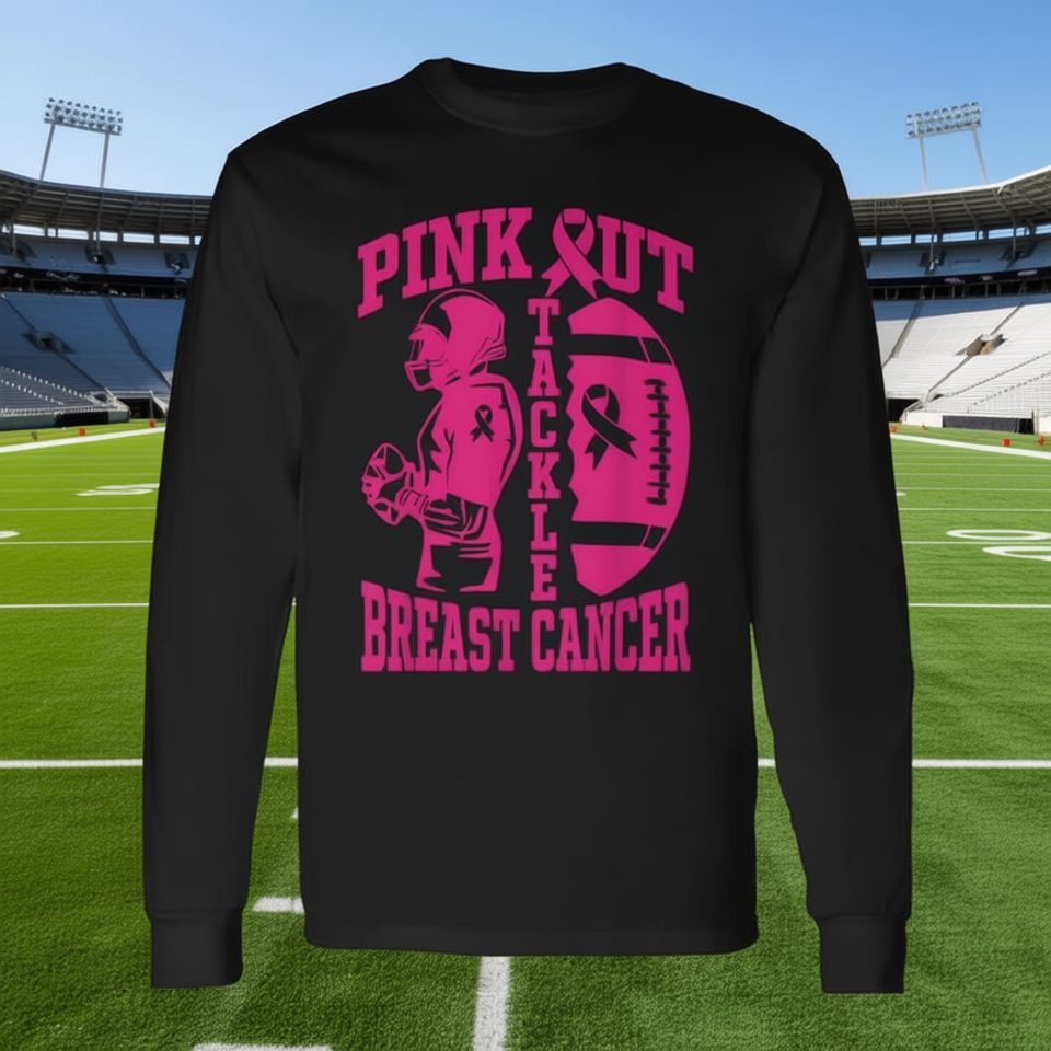 T-shirt à manches longues avec motif de football rose pour la sensibilisation au cancer du sein