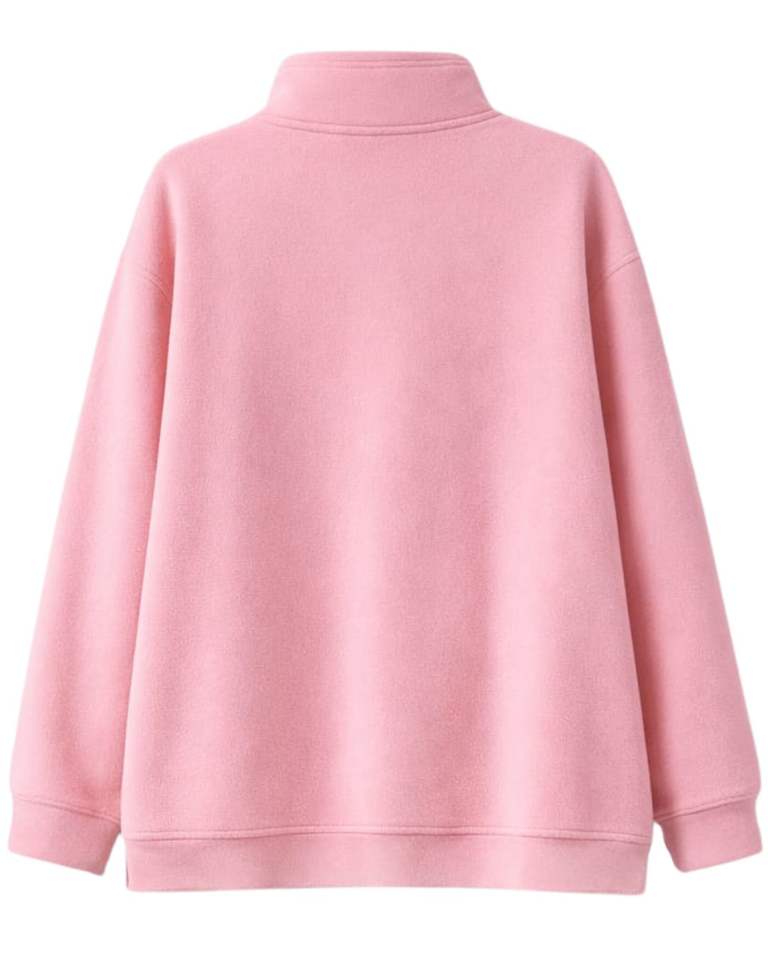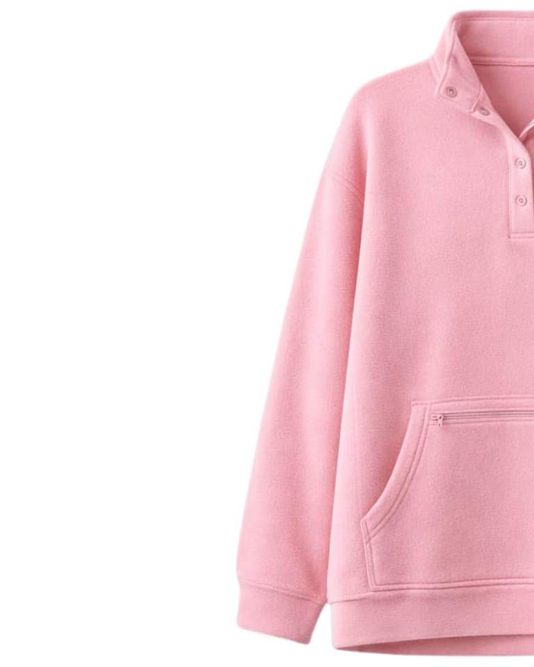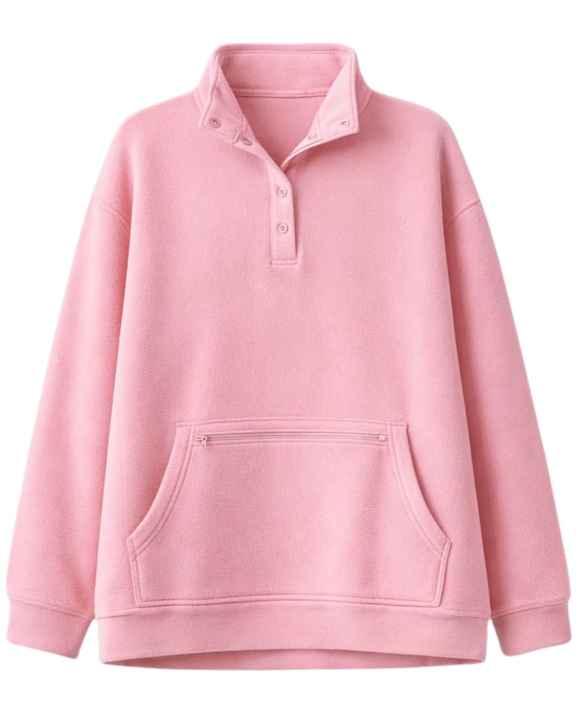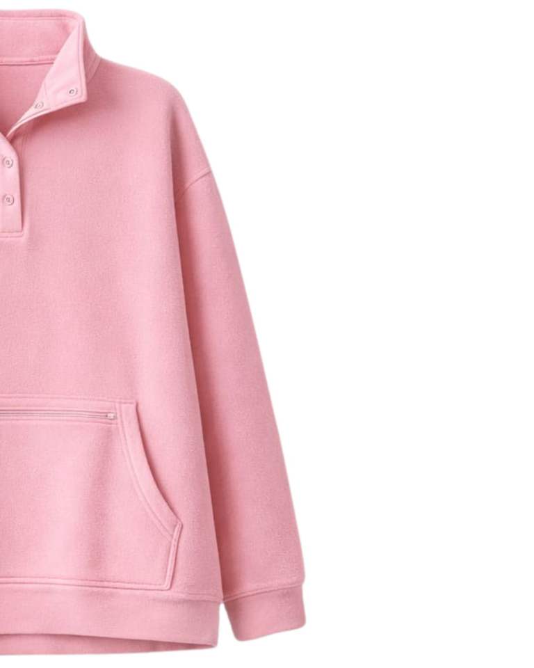 Sweat-shirt polaire rose oversize pour femme avec col à boutons, poche kangourou, épais, pour l'hiver, modèle fabricant