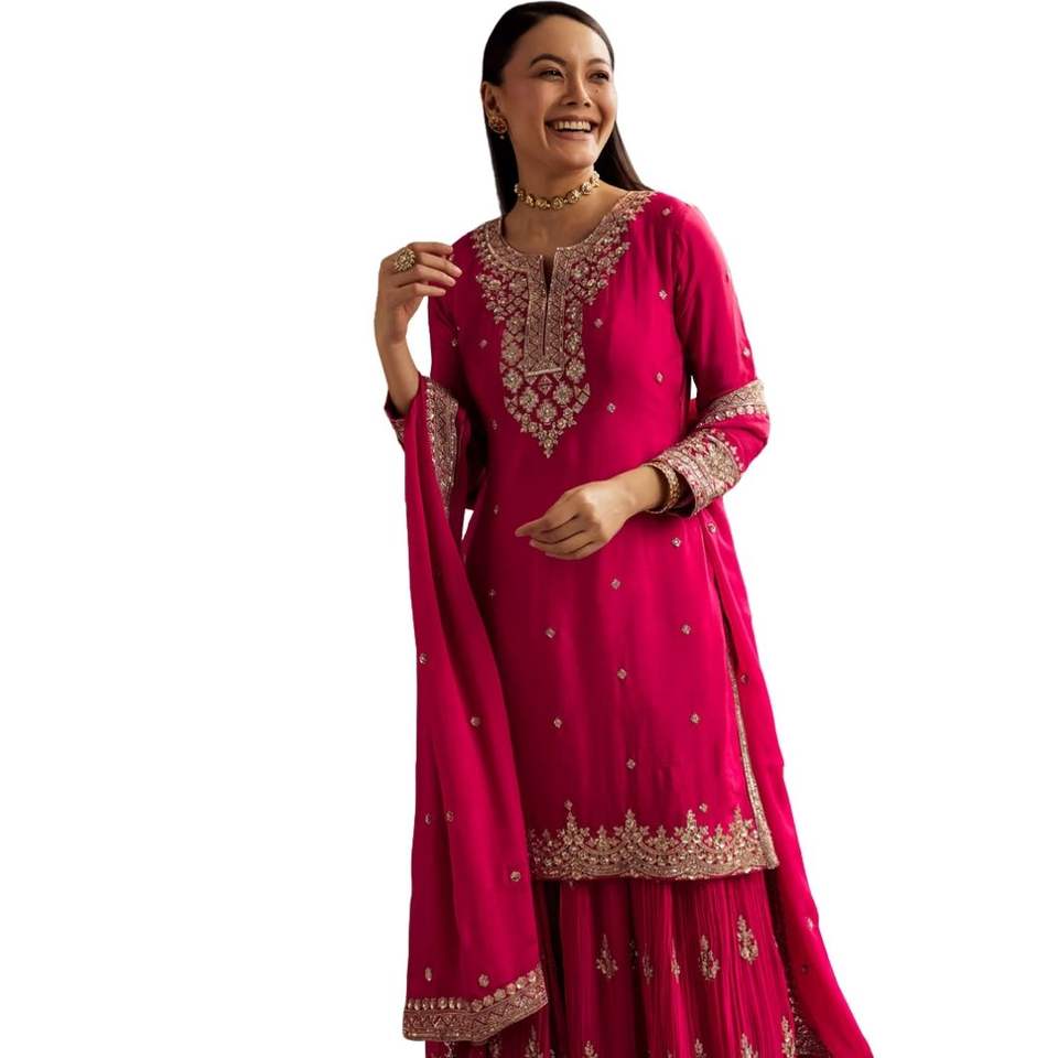 Ensemble Palazzo Dupatta rose avec paillettes travail vente en gros de vêtements ethniques OEM pour femmes fournisseur d'usine tenue de fête de mariage personnalisée