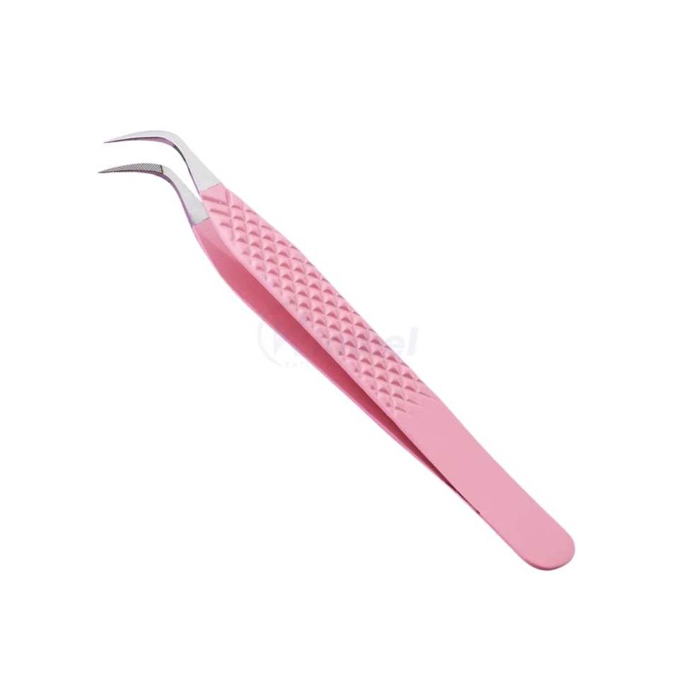 Pince à cils rose courbée professionnelle en acier inoxydable pour l'application de cils volumineux