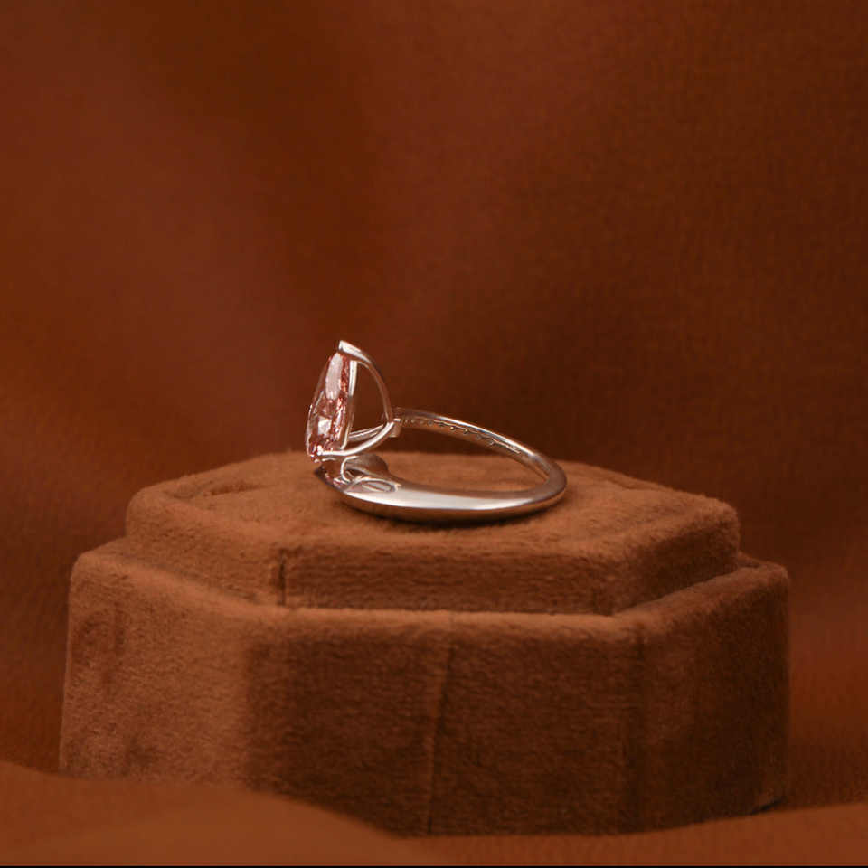 Bague de fiançailles en diamant rose taillé en poire avec poire minuscule et diamant rond cultivé en laboratoire en or massif 14KT