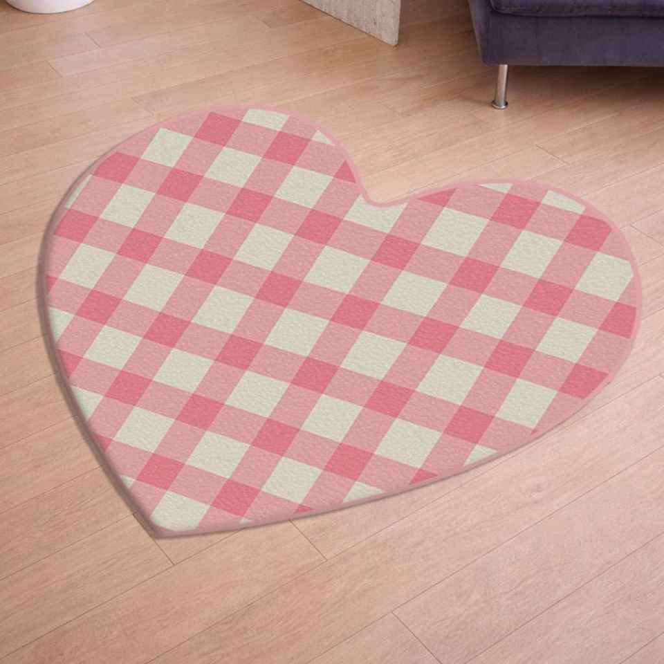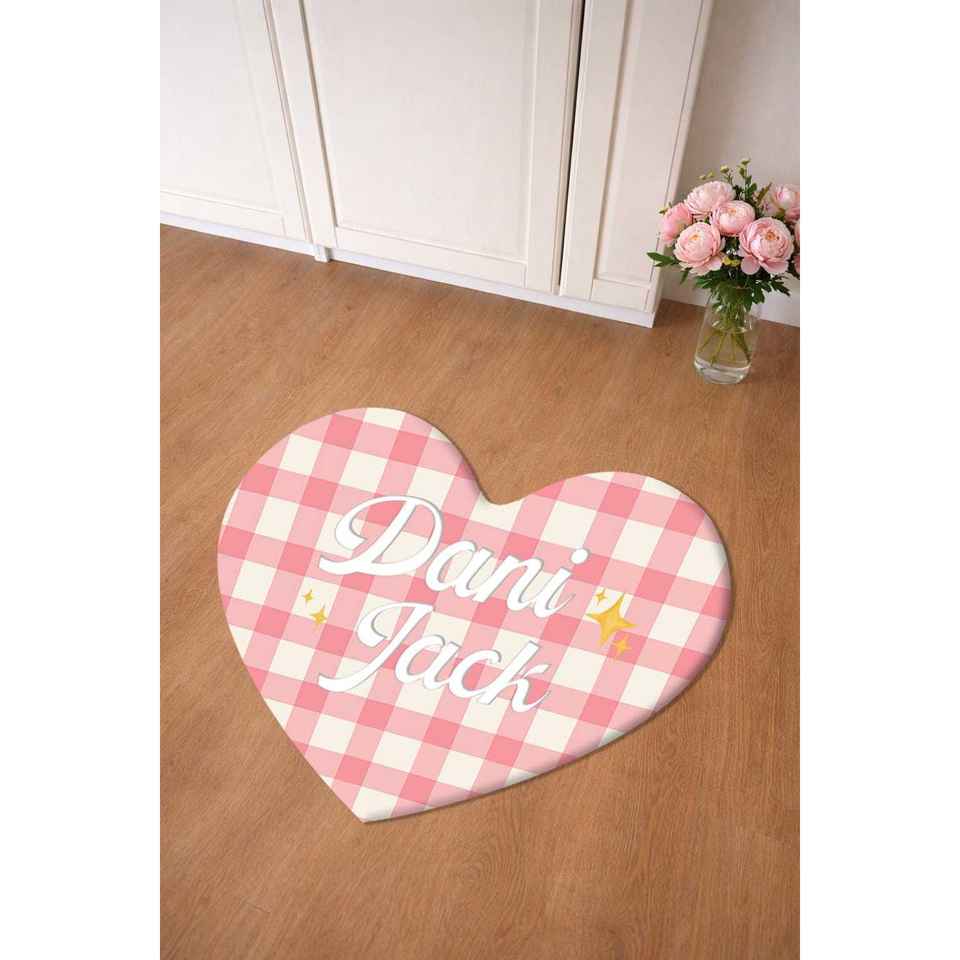 Tapis à motif écossais rose, cadeau pour petite amie, tapis pour la Saint-Valentin, cœur 1 avec nom