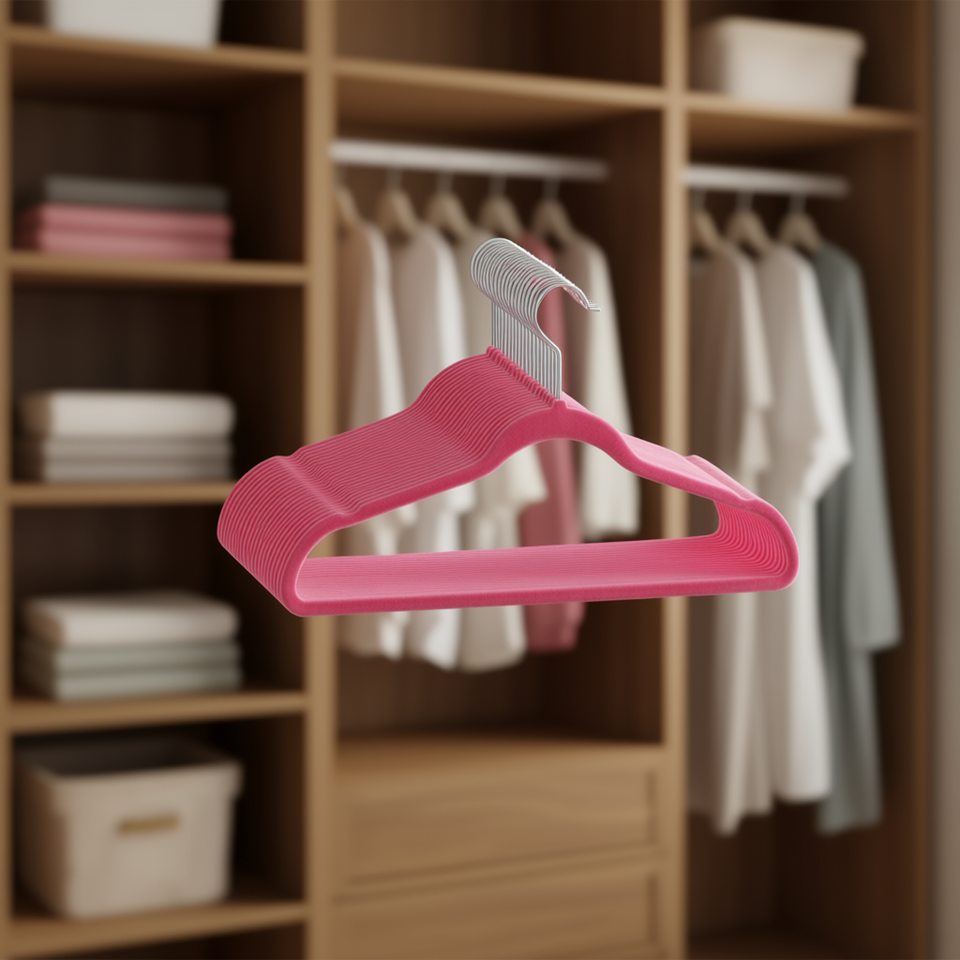 Cintres en velours rose en plastique, taille standard, avec crochet en alliage de zinc, pour rangement de vêtements, lot de 50